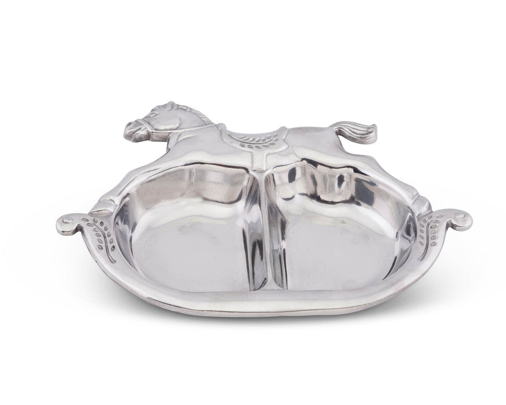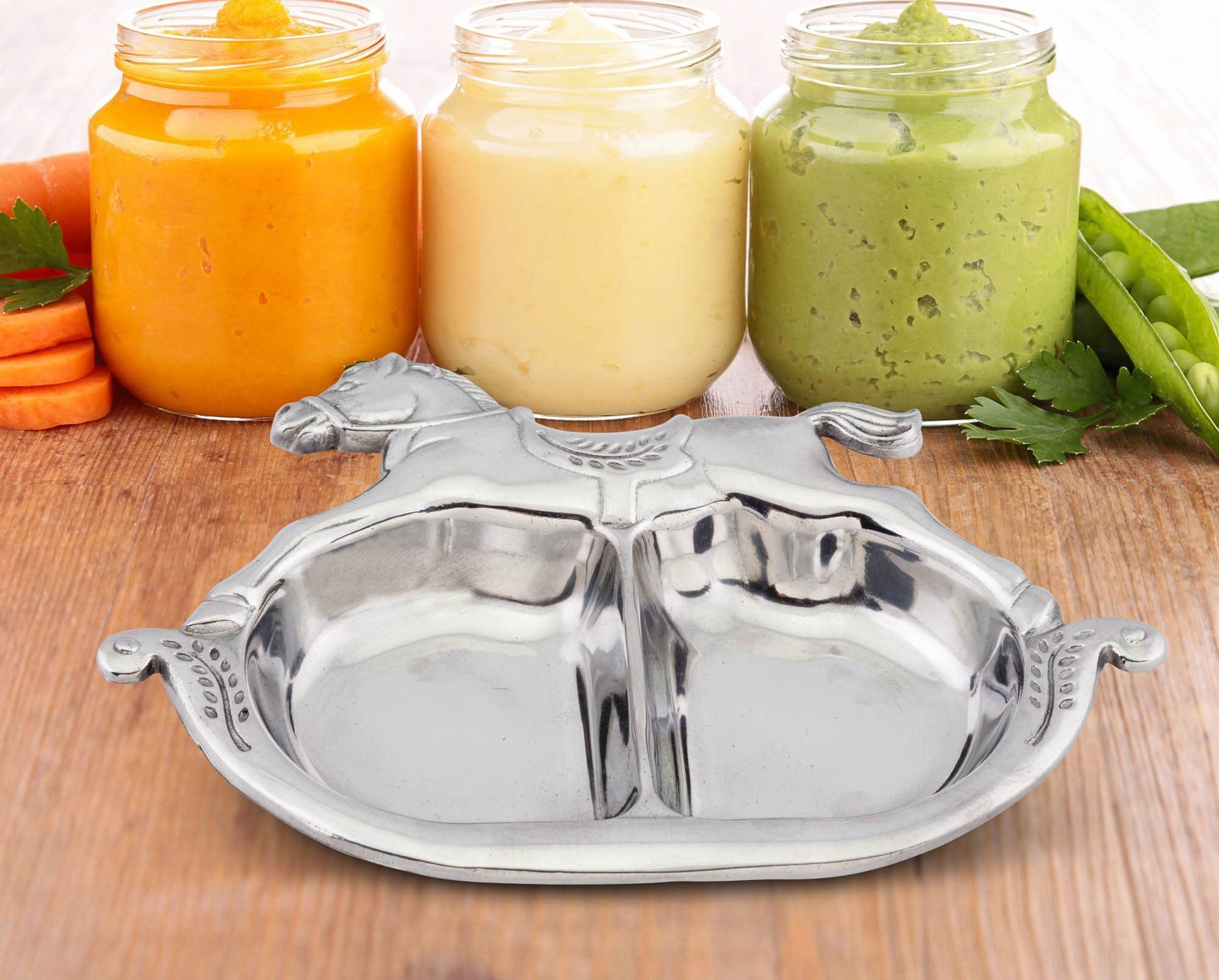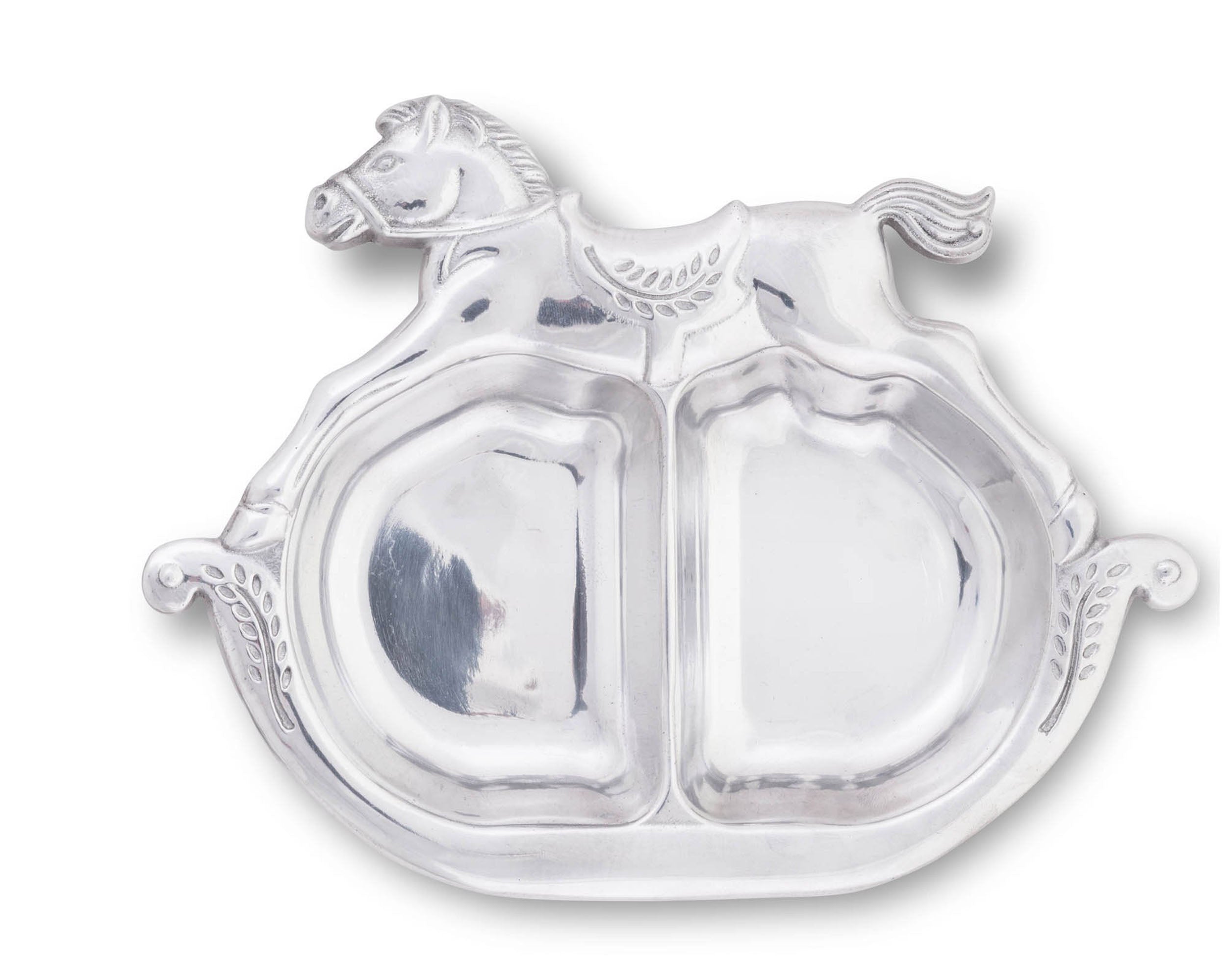 Charm your baby into eating anything by feeding it from Arthur Court's Rocking Horse Divided Plate.