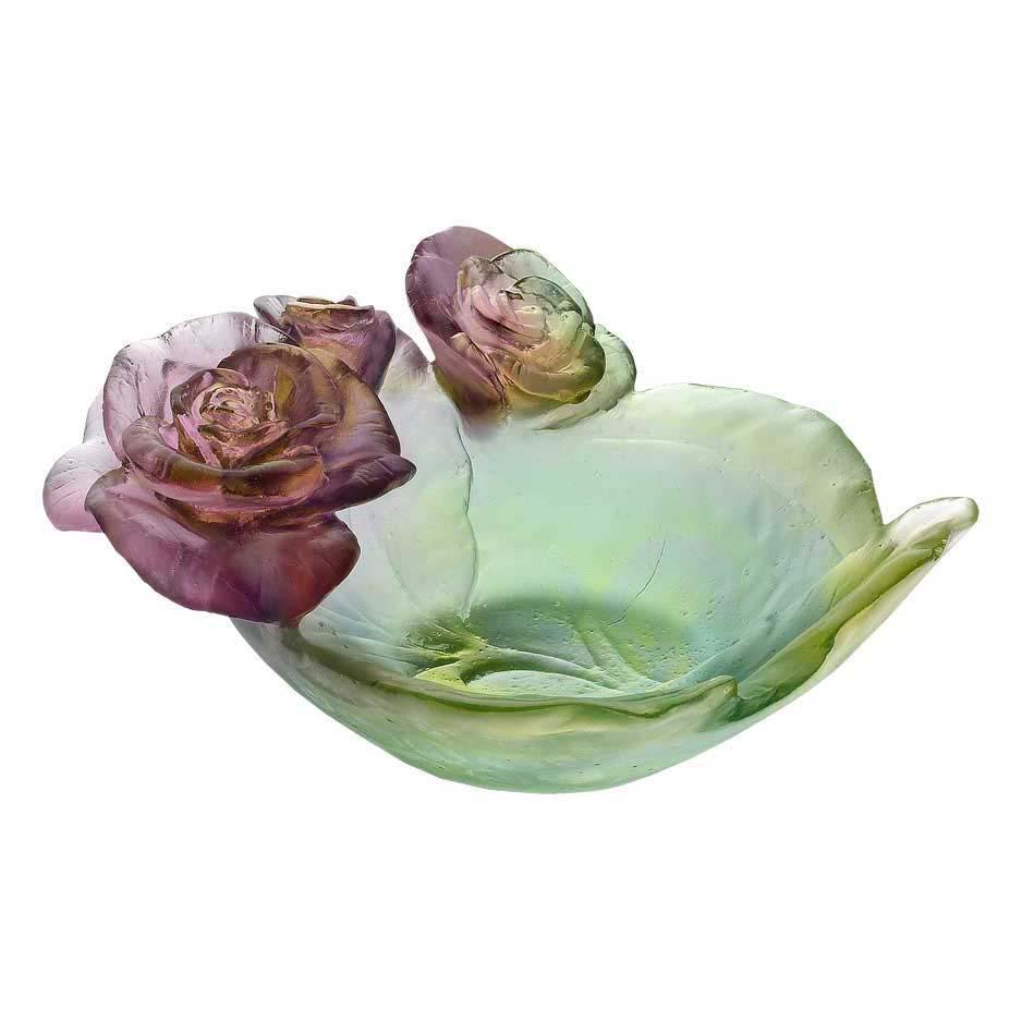 Daum Crystal Rose Passion Small Bowl Green Pink 05289
