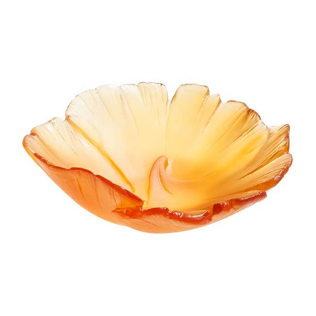 The Maison Daum presents the Ginkgo collection in amber. This colour was inspired by the autumn leaves of Ginkgo, as they turn into beautiful golden yellow leaves that persist for several weeks. When the leaves fall, they form a golden carpet around the tree.