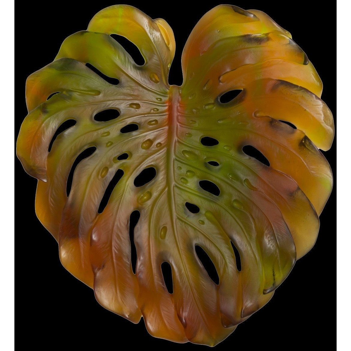 Daum Crystal Wall Leaf Long Fixation Small Green Amber 05276-170