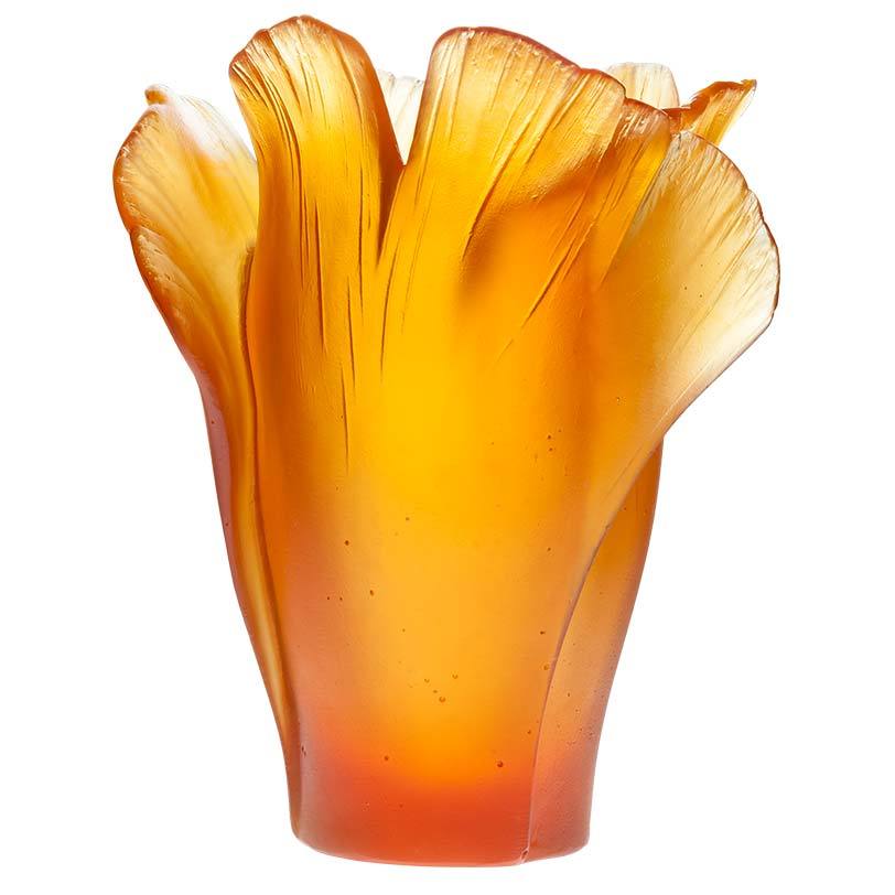 The Maison Daum presents the Ginkgo collection in amber. This colour was inspired by the autumn leaves of Ginkgo, as they turn into beautiful golden yellow leaves that persist for several weeks. When the leaves fall, they form a golden carpet around the tree.