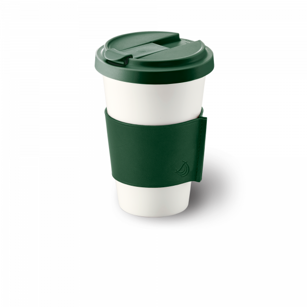 Dibbern KonischZylindrisch Fine Bone China CoffeeToGo Cup with leather sleeve in Dark Green (0.35l) 214300004