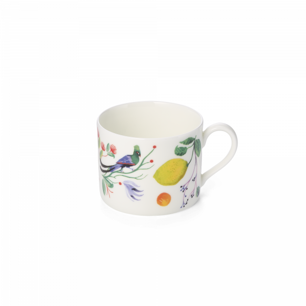 Holds: 0.25 liters - Dishwasher- and microwave safe - Designed By Lina Ekstrand, Schweden - With the new series PARADISE, the Swedish illustrator Lina Ekstrand, who has already designed the WUNDERLAND series for Dibbern, takes us to an enchanting Garden of Eden with fresh oranges and lemons, just-opening flower buds and an exotic animal world The luminous Fine Bone China material makes the imaginative and playful design shine with particular intensity