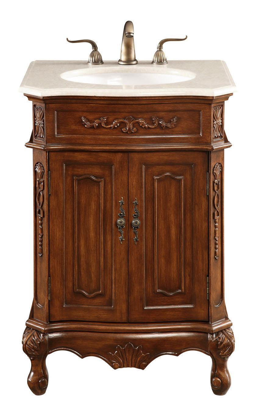Dimensions Length: 24" Width: 21" Height: 35" Depth: 21" Counter Top Length: 24" Counter Top Width: 21" Counter Top Height: 0.7" Sink Width: 15.25" Sink Depth: 12" Sink Height: 7" Sink Drain Hole Size: 1.75" Faucet Hole Spacing: 8" Table Top Width: 21"" Specifications Product Type: Bathroom Vanities Wire Included: No Fixture Material: Solid Wood and MDF Base Material: MDF Faucet Included: NO Faucet Type: widespread Drain Assembly Included: NO Assembly Required: No Distressed Finish: no Hardware Finish: Antique metal Counter Top Finish: beige Counter Top Edge Style: Ogee Sink Mounting Type: Undermount Vanity Mounting Type: Free-Standing Vanity Backsplash: No Number of Sinks: 1 Number of Faucet Holes: 3 Wood Type: Rubberwood Weight: 88 Product Warranty: 1 year limited Shipment type: Oversized Ground Drawers Drawers Included: No Number of Drawers: 0 False Drawers: No Shelves Number of Shelves: 1 Shelf Width: 17-3/4" Cabinets Number of Cabinets: 1 Cabinet Interior Width: 17-3/4 Cabinet Interior Depth: 18-5/8" Cabinet Interior Height: 20-1/8"