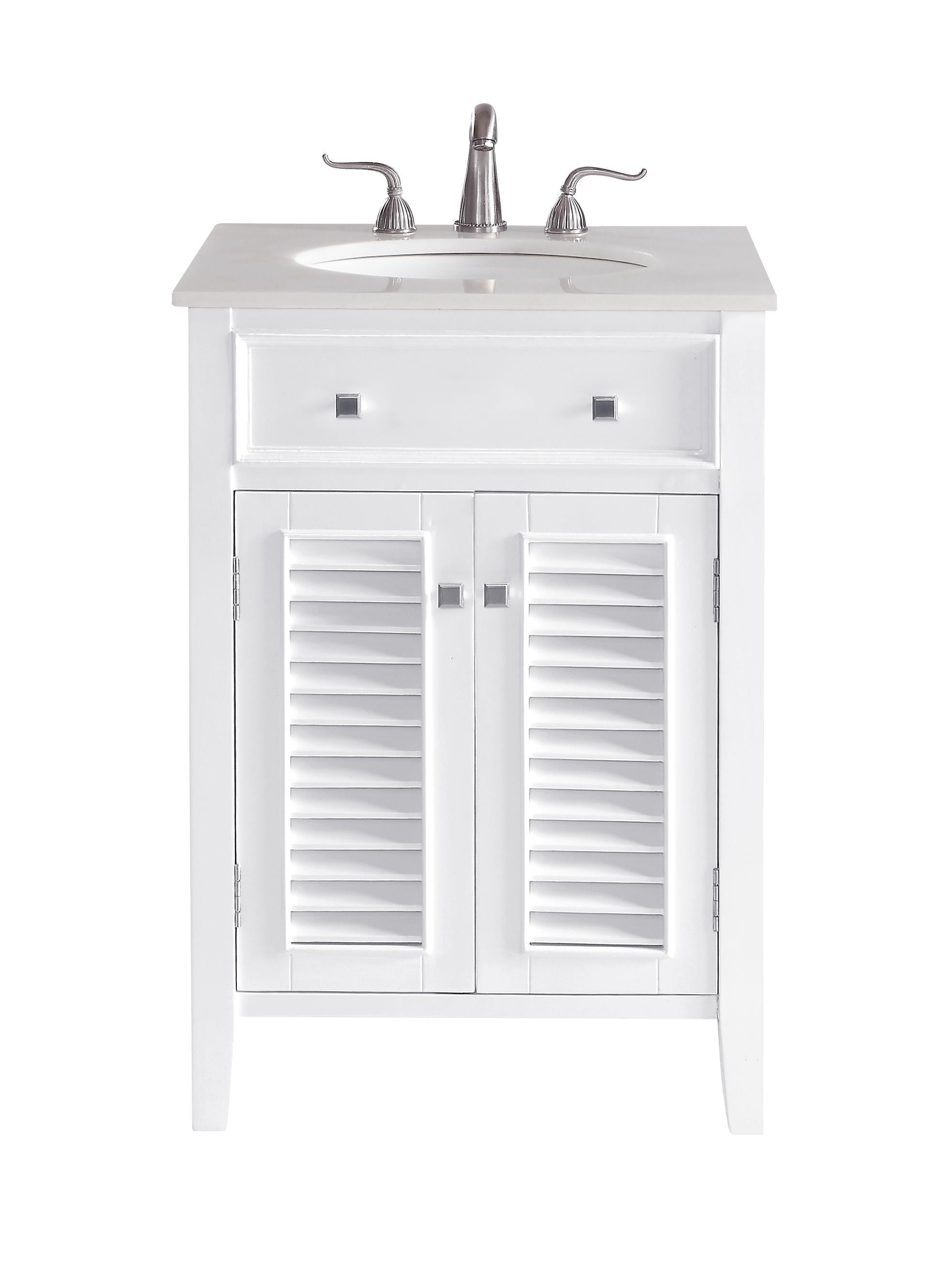 Dimensions Length: 24" Width: 21" Height: 35" Depth: 21" Counter Top Length: 24" Counter Top Width: 21" Counter Top Height: 0.7" Sink Width: 15.25" Sink Depth: 12" Sink Height: 7" Sink Drain Hole Size: 1.75" Faucet Hole Spacing: 8" Table Top Width: 21"" Specifications Product Type: Bathroom Vanities Wire Included: No Fixture Material: Solid Wood and MDF Base Material: Solid wood and MDF Faucet Included: No Faucet Type: widespread Drain Assembly Included: No Assembly Required: No Distressed Finish: no Hardware Finish: Brushed steel Counter Top Finish: white and brown vein Counter Top Edge Style: Flat & Straight Sink Mounting Type: Undermount Vanity Mounting Type: Free-Standing Vanity Backsplash: No Number of Sinks: 1 Number of Faucet Holes: 3 Wood Type: Birch and Rubberwood Weight: 76.12 Product Warranty: 1 year limited Shipment type: Oversized Ground Drawers Drawers Included: NO Number of Drawers: 0 False Drawers: YES Drawer Handle Designs: knobs Shelves Number of Shelves: 1 Shelf Width: 20" Cabinets Number of Cabinets: 1 Cabinet Interior Width: 20 Cabinet Interior Depth: 15-3/4" Cabinet Interior Height: 20-5/8"