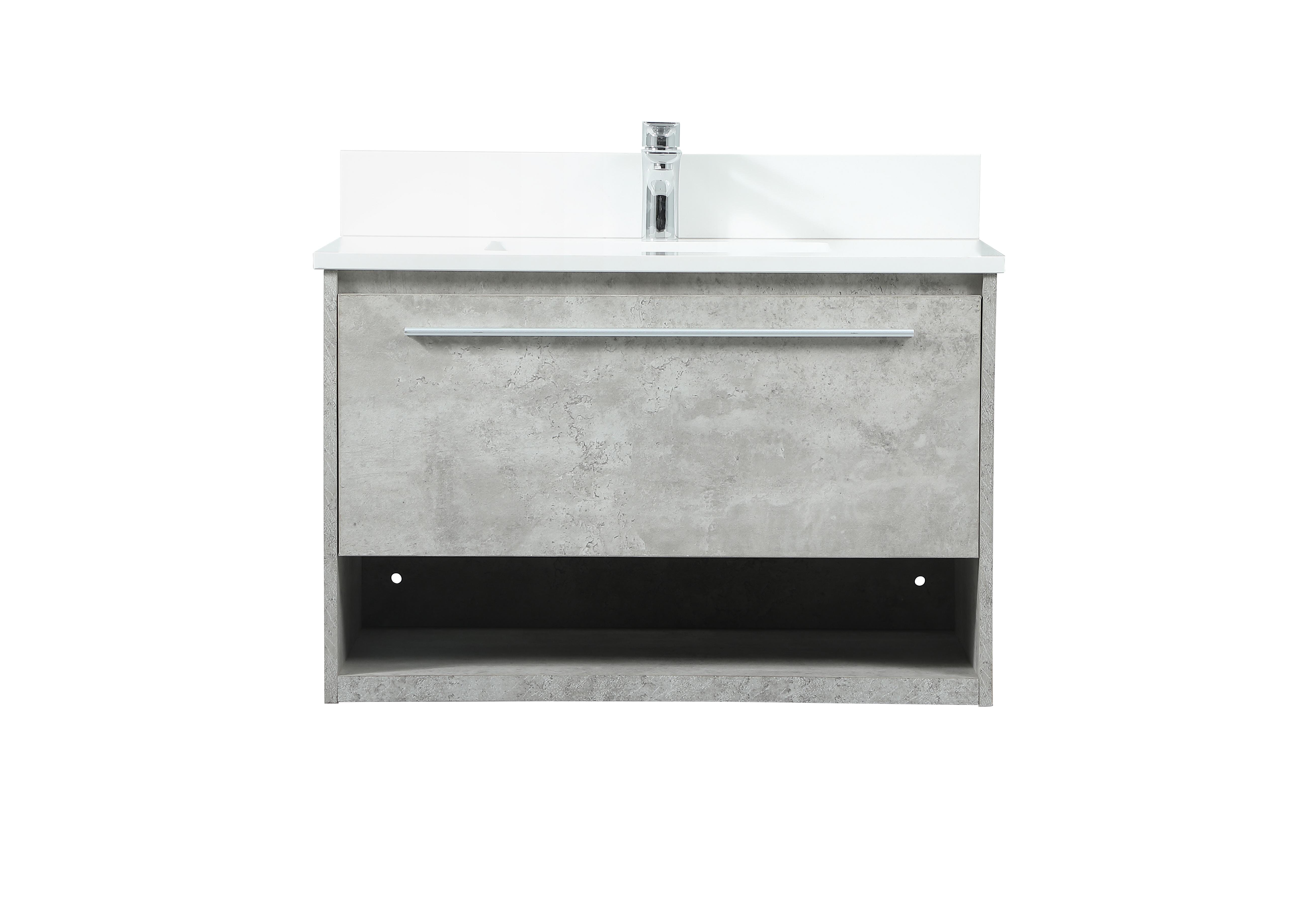 Installation Manual Dimensions Length: 30" Width: 18" Height: 19.7" Counter Top Length: 30" Counter Top Width: 18.31" Counter Top Height: 0.71" Sink Width: 15.35" Sink Depth: 10.24" Sink Height: 8.25" Sink Drain Hole Size: 1.77" Specifications Product Type: Bathroom Vanities Wire Included: No Harware Material: Aluminum alloy Fixture Material: MDF Base Material: MDF Product Shape: Rectangle Faucet Included: NO Drain Assembly Included: NO Assembly Required: No Distressed Finish: NO Hardware Finish: Silver Counter Top Finish: Ivory Counter Top Edge Style: FLAT Sink Mounting Type: Undermount Vanity Mounting Type: Wall Mounted Vanity Backsplash: YES Number of Sinks: 1 Number of Faucet Holes: 1 Weight: 79.4 Product Warranty: 1 year limited Shipment type: Oversized Ground Drawers Drawers Included: YES Number of Drawers: 1 False Drawers: NO Drawer Width: 27.8 Drawer Depth: 14.37 Drawer Height: 11.42 Drawer Handle Designs: Bar pulls Shelves Number of Shelves: 1 Shelf Width: 27.95
