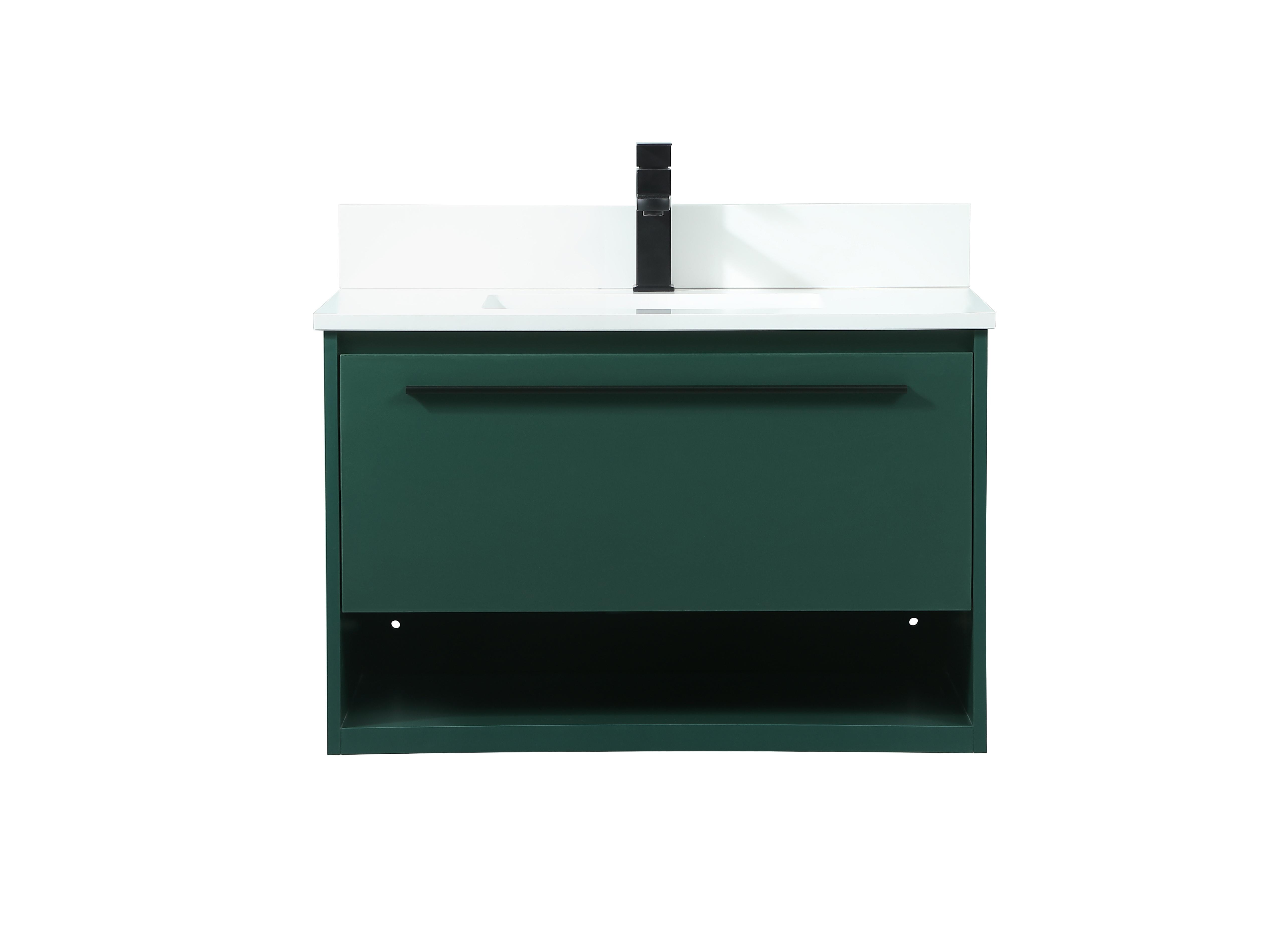 Installation Manual Dimensions Length: 30" Width: 18" Height: 19.7" Counter Top Length: 30" Counter Top Width: 18.31" Counter Top Height: 0.71" Sink Width: 15.35" Sink Depth: 10.24" Sink Height: 8.25" Sink Drain Hole Size: 1.77" Specifications Product Type: Bathroom Vanities Wire Included: No Harware Material: Aluminum alloy Fixture Material: MDF Base Material: MDF Product Shape: Rectangle Faucet Included: NO Drain Assembly Included: NO Assembly Required: No Distressed Finish: NO Hardware Finish: Black Counter Top Finish: Ivory Counter Top Edge Style: FLAT Sink Mounting Type: Undermount Vanity Mounting Type: Wall Mounted Vanity Backsplash: YES Number of Sinks: 1 Number of Faucet Holes: 1 Weight: 79.4 Product Warranty: 1 year limited Shipment type: Oversized Ground Drawers Drawers Included: YES Number of Drawers: 1 False Drawers: NO Drawer Width: 27.8 Drawer Depth: 14.37 Drawer Height: 11.42 Drawer Handle Designs: Bar pulls Shelves Number of Shelves: 1 Shelf Width: 27.95