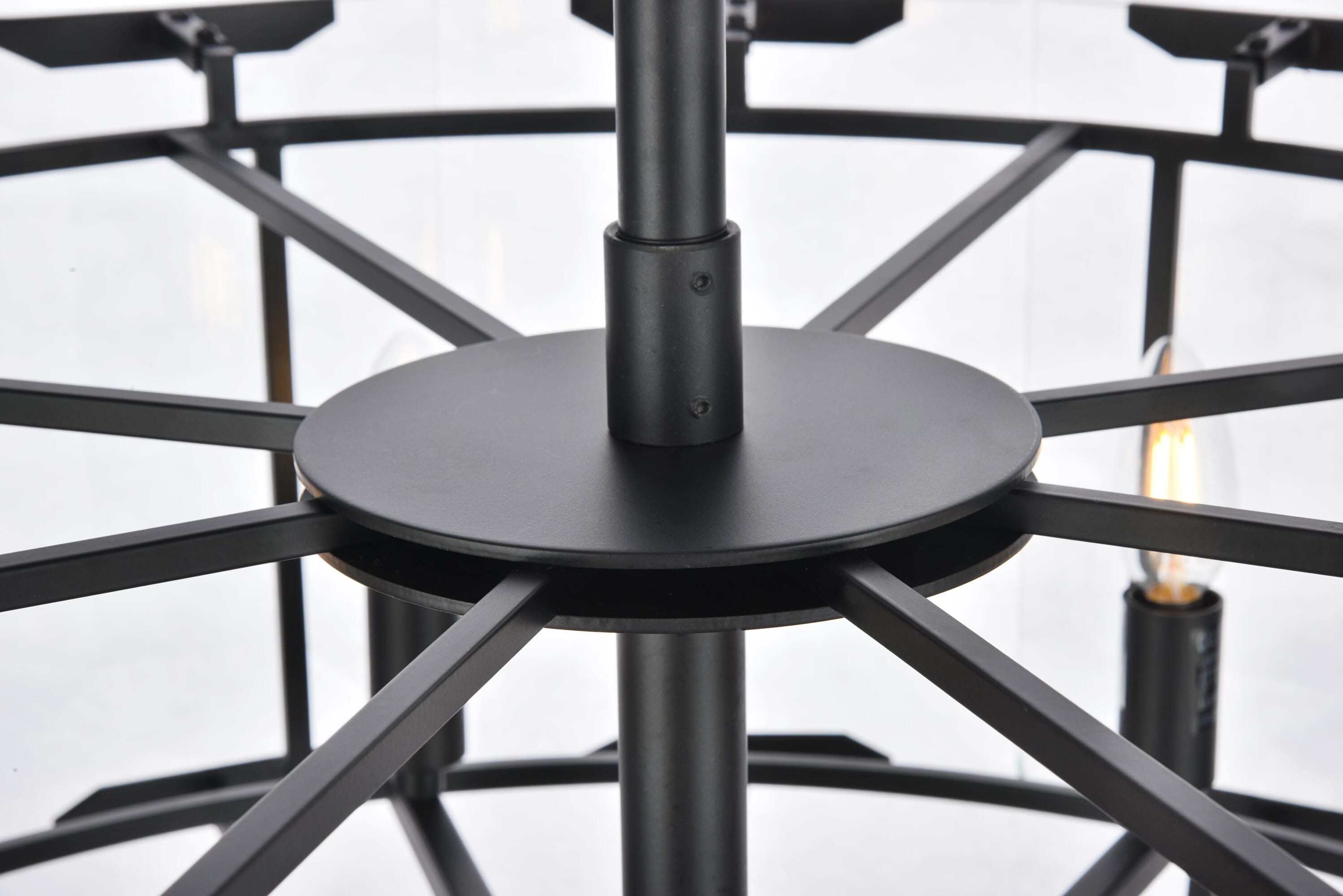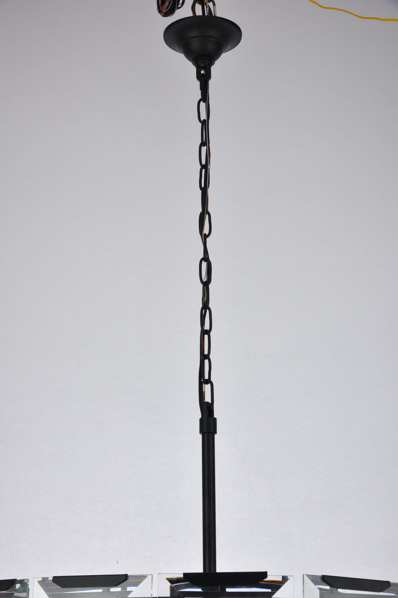Dimensions Chain/Rod Length: 120" Length: 30" Width: 30" Height: 12" Maximum Height: 72" Wire Length: 141.73" Specifications Product Type: Chandeliers Hanging Device: Chain Voltage: 110V - 125V Dimmable: Yes Socket Type: E12 Number of Lights: 8 Wattage/Bulb: 40 Max/Nominal Watt: 320 Crystal/Glass Color: clear Yes Bulb Shape: B10 Harware Material: Steel Fixture Material: Steel and Glass Product Shape: Chandeliers Assembly Required: YES Hardware Finish: Flat Black (Matte) Bulb Included: No Weight: 53.24 Product Warranty: 1 year limited Shipment type: Small Parcel