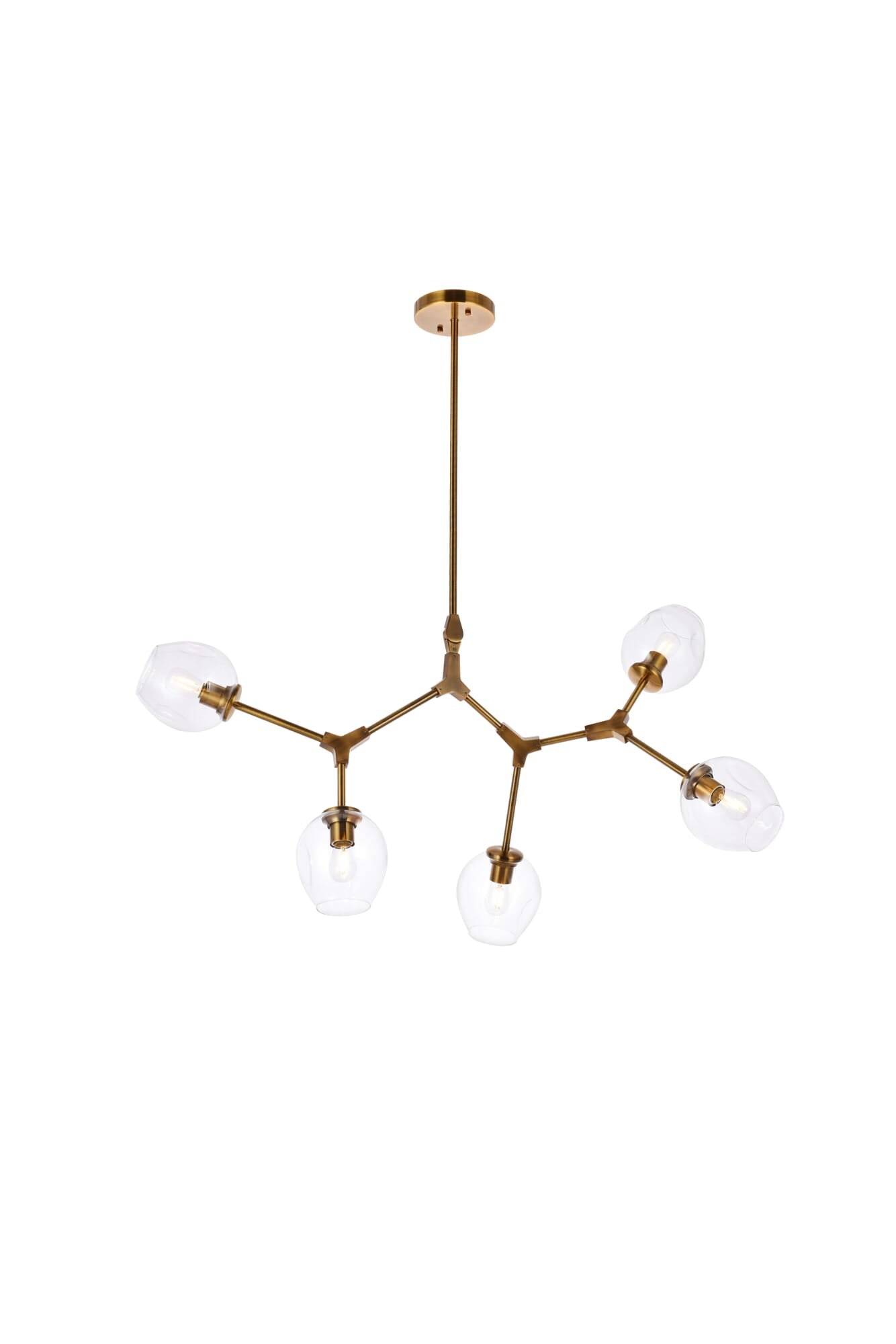 Dimensions Chain/Rod Length: 46" Length: 42.5" Width: 29" Height: 29" Maximum Height: 68.5" Wire Length: 59" Specifications Product Type: Chandeliers Hanging Device: Rod Voltage: 120V Dimmable: Yes Socket Type: E26 Number of Lights: 5 Wattage/Bulb: 60W Max/Nominal Watt: 300W Wire Included: Yes ETL: YES Harware Material: Iron Fixture Material: Iron and Glass Product Shape: Linear Assembly Required: YES Hardware Finish: Brass Bulb Included: No Dry/Wet/Damp: Damp Weight: 7.5 Product Warranty: 1 year limited Shipment type: Small Parcel
