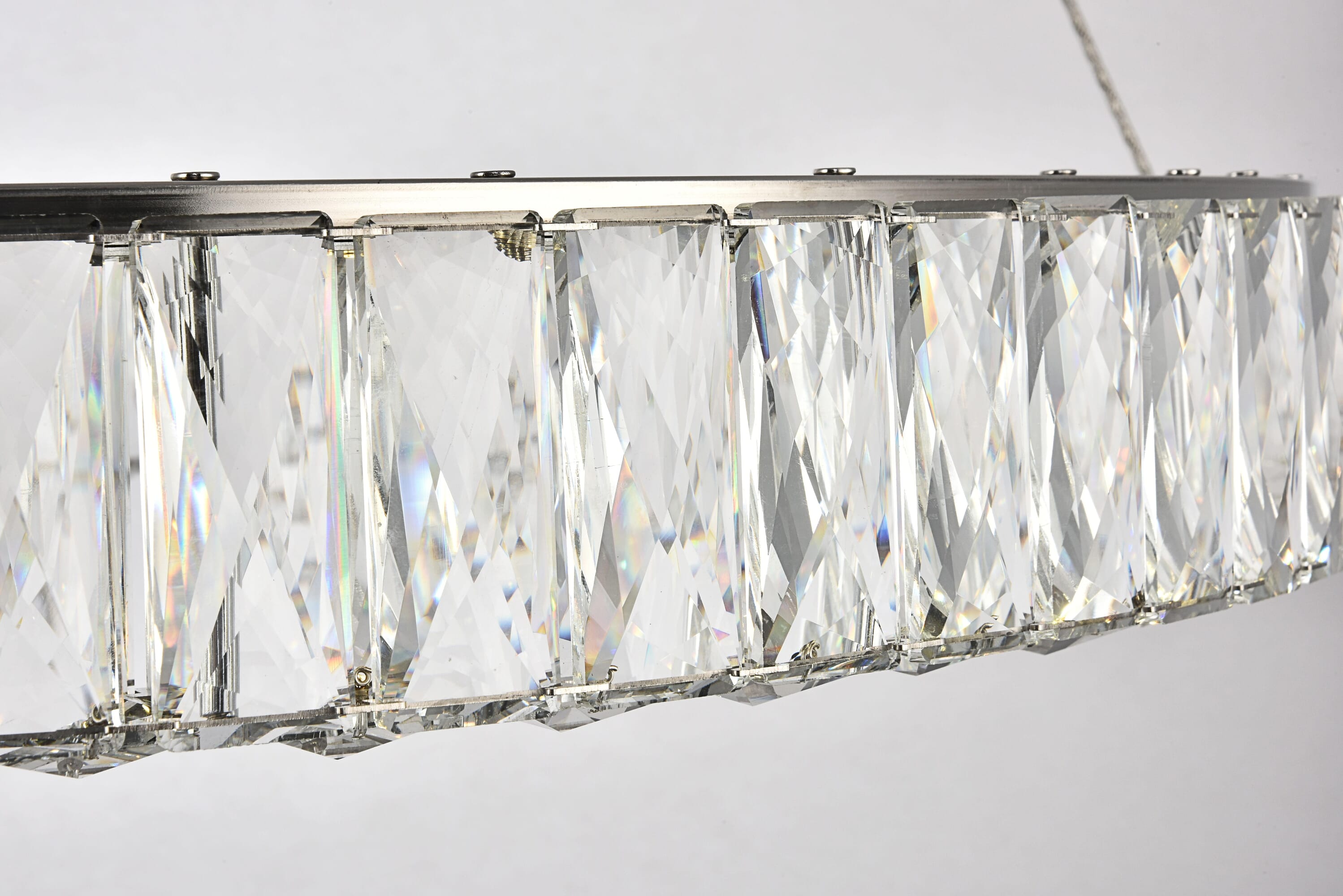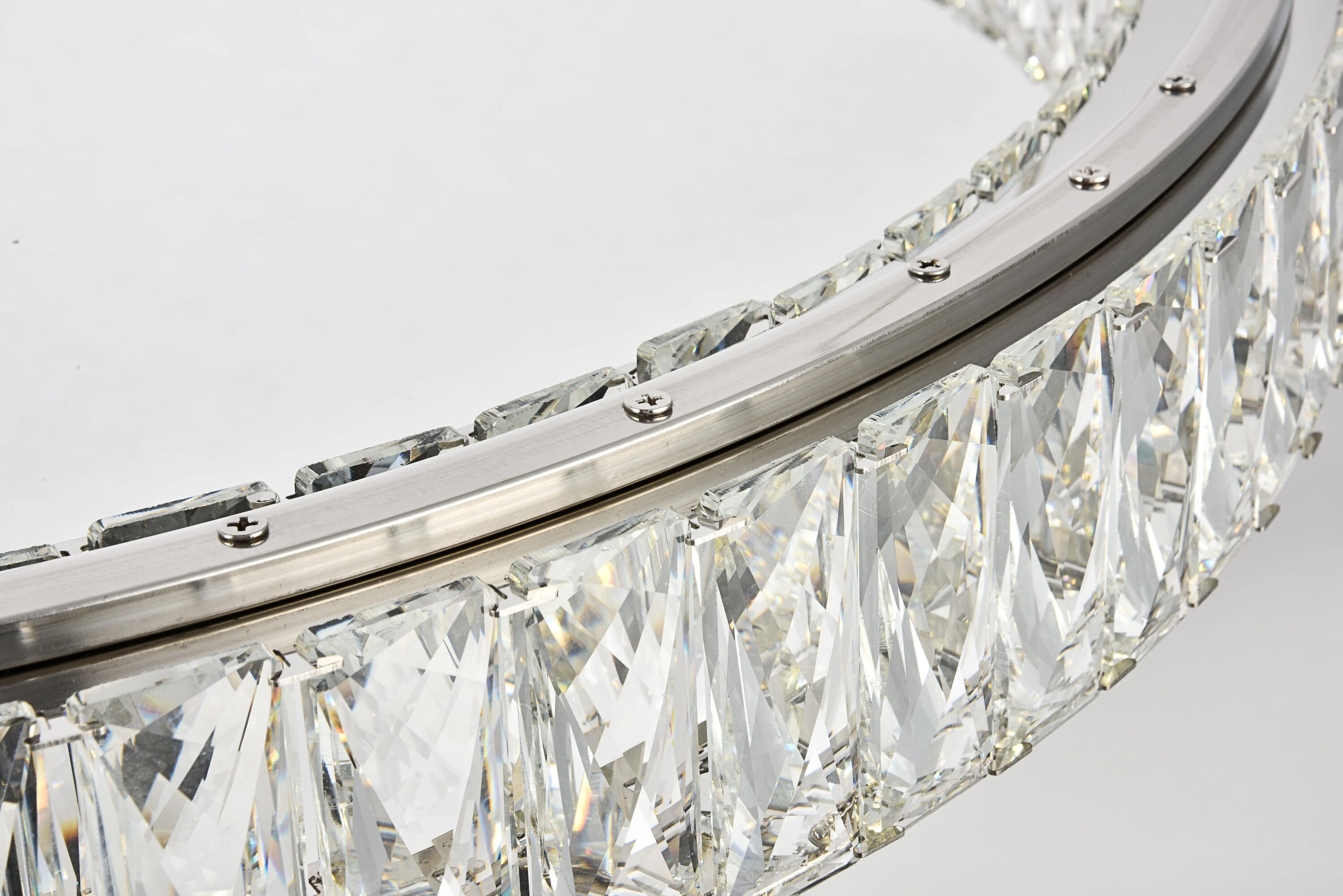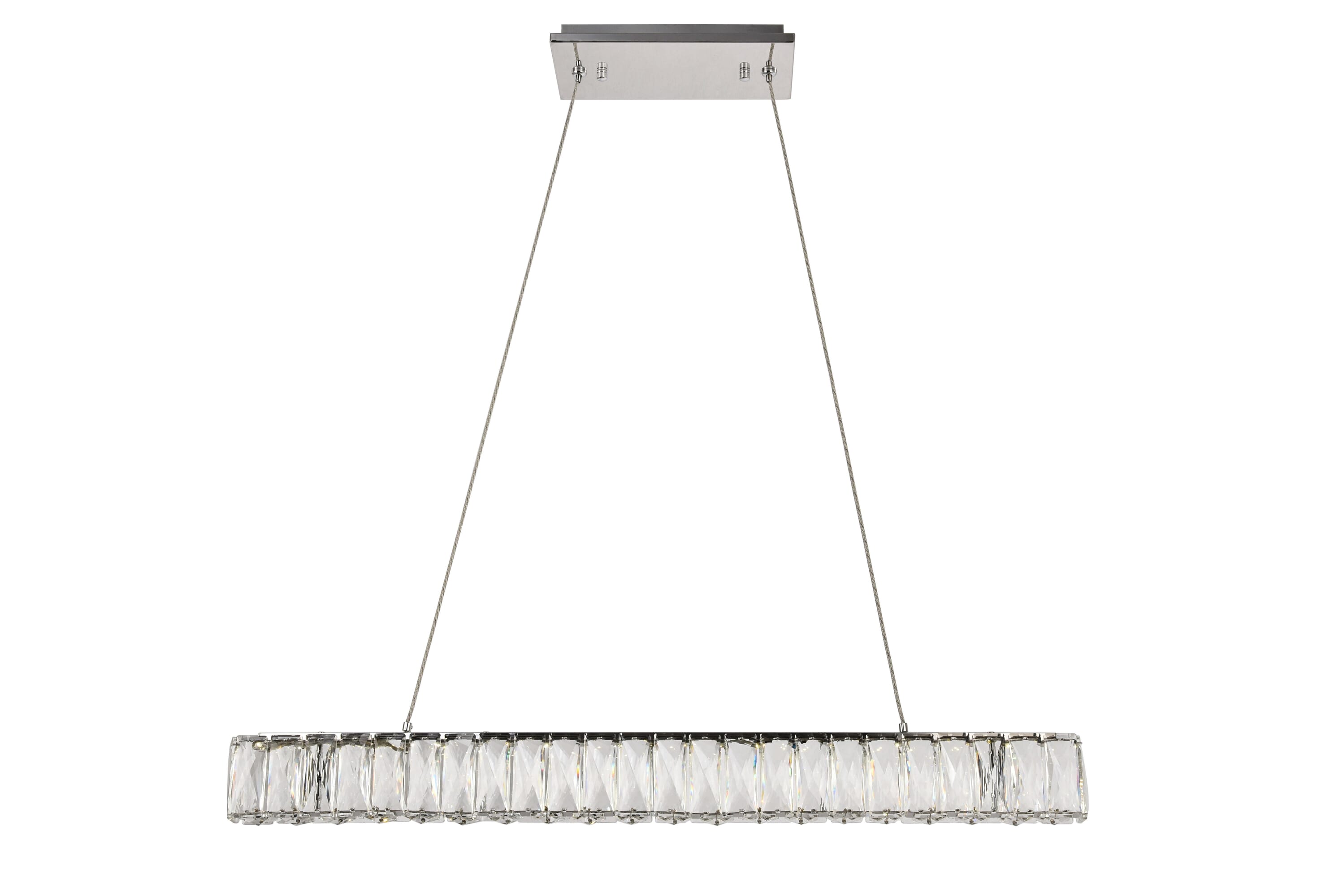 Dimensions Chain/Rod Length: 132" Length: 31.5" Width: 31.5" Height: 3" 134 134 Specifications Product Type: Chandeliers Hanging Device: Steel Wire Voltage: 110V - 125V Dimmable: Yes Only Up To 90% Socket Type: Integrated LED Chip Number of Lights: Integrated LED chip Wattage/Bulb: 0.225 Max/Nominal Watt: 45 Crystal/Glass Color: Clear Wire Included: Yes Bulb Shape: Rectangle Harware Material: Stainless Steel Fixture Material: Stainless Steel and Crystal Product Shape: Chandeliers Assembly Required: No Hardware Finish: Chrome Bulb Included: Yes UL & ULC Standard: UL,ULC Weight: 22.2 Product Warranty: 1 year limited Shipment type: Small Parcel