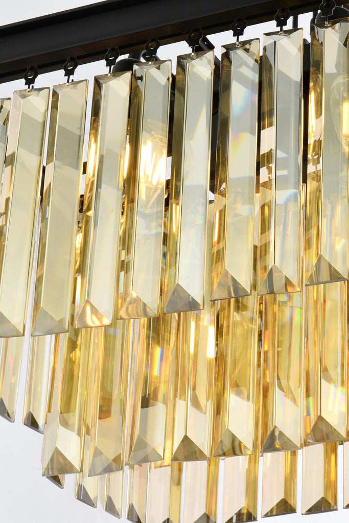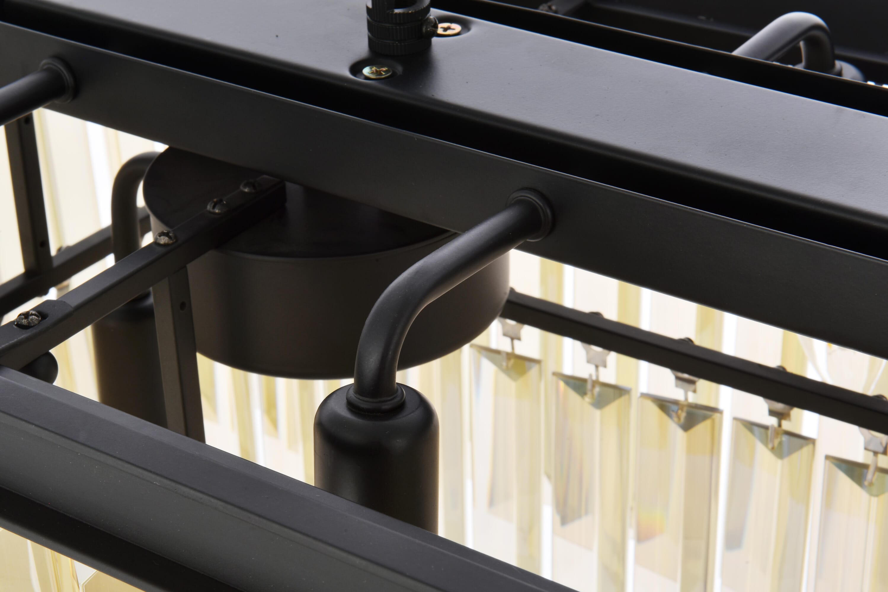 Dimensions Chain/Rod Length: 60" Length: 40" Width: 14" Height: 18" Maximum Height: 78" Wire Length: 141.73" Specifications Product Type: Chandeliers Hanging Device: Chain Voltage: 110V - 125V Dimmable: Yes Socket Type: E12 Number of Lights: 12 Wattage/Bulb: 60 Max/Nominal Watt: 720 Crystal/Glass Color: Golden Teak (Smoky) Wire Included: Yes Bulb Shape: B10 Harware Material: Steel Fixture Material: Steel Product Shape: Chandeliers Assembly Required: YES Hardware Finish: Matte Black Bulb Included: No UL & ULC Standard: UL,ULC Weight: 80.75 Product Warranty: 1 year limited Shipment type: LTL