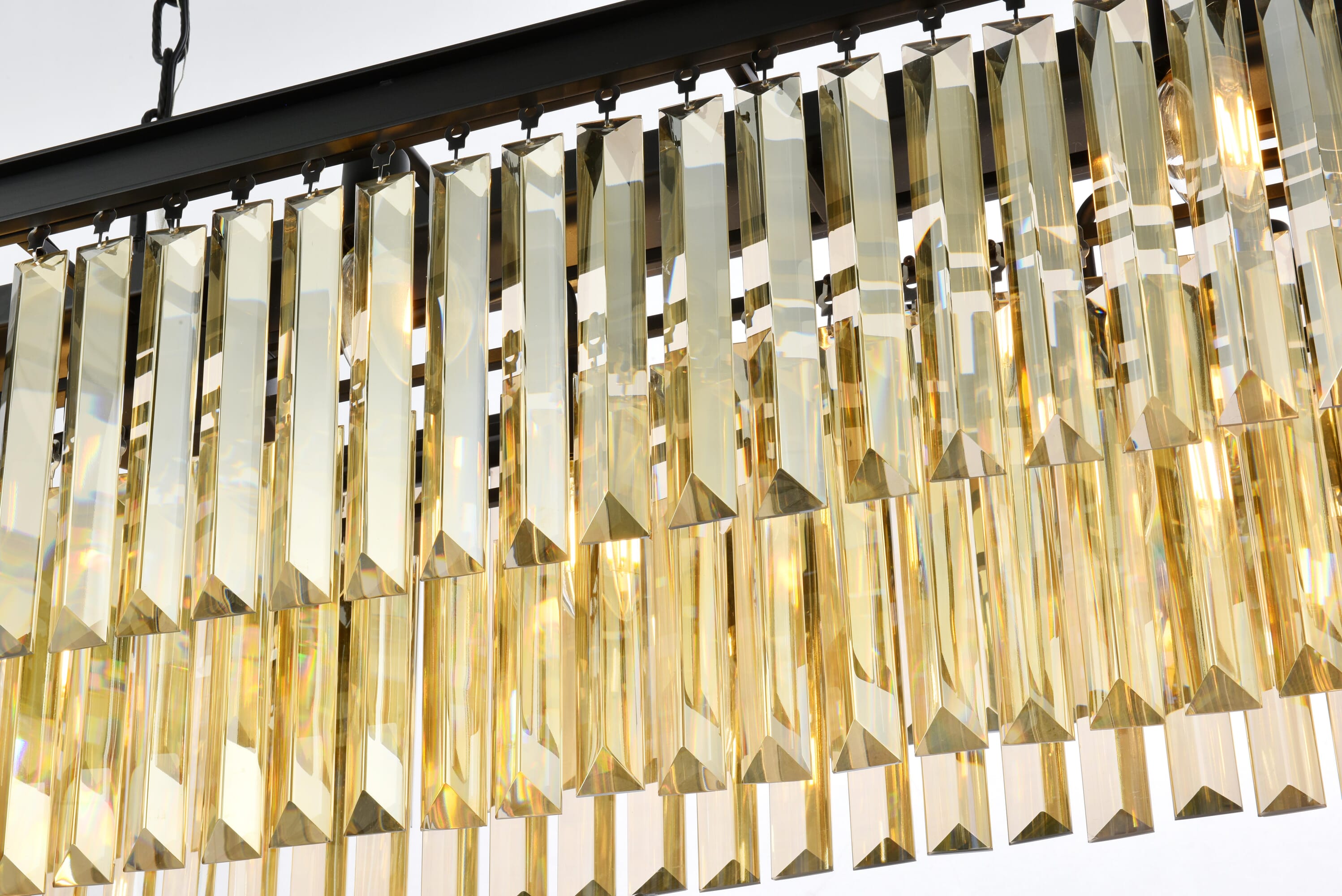 Dimensions Chain/Rod Length: 60" Length: 60" Width: 14" Height: 18" Maximum Height: 78" Wire Length: 141.73" Specifications Product Type: Chandeliers Hanging Device: Chain Voltage: 110V - 125V Dimmable: Yes Socket Type: E12 Number of Lights: 12 Wattage/Bulb: 60 Max/Nominal Watt: 720 Crystal/Glass Color: Golden Teak (Smoky) Wire Included: Yes Bulb Shape: B10 Harware Material: Steel Fixture Material: Steel Product Shape: Chandeliers Assembly Required: YES Hardware Finish: Matte Black Bulb Included: No UL & ULC Standard: UL,ULC Weight: 113.15 Product Warranty: 1 year limited Shipment type: LTL