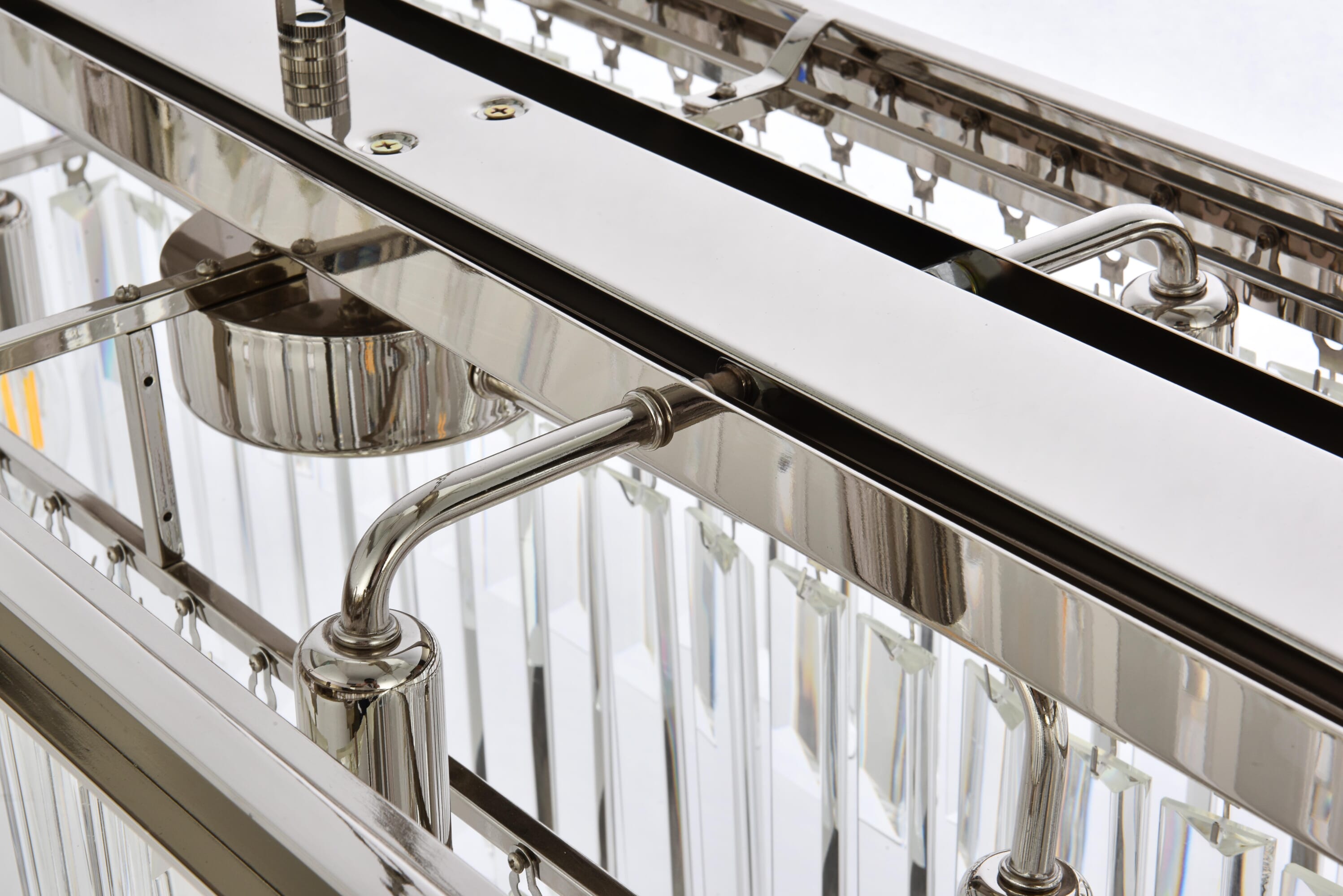 Dimensions Chain/Rod Length: 60" Length: 60" Width: 14" Height: 18" Maximum Height: 78" Wire Length: 141.73" Specifications Product Type: Chandeliers Hanging Device: Chain Voltage: 110V - 125V Dimmable: Yes Socket Type: E12 Number of Lights: 12 Wattage/Bulb: 60 Max/Nominal Watt: 720 Crystal/Glass Color: clear Wire Included: Yes Bulb Shape: B10 Harware Material: Steel Fixture Material: Steel Product Shape: Chandeliers Assembly Required: YES Hardware Finish: Polished nickel Bulb Included: No UL & ULC Standard: UL,ULC Weight: 113.15 Product Warranty: 1 year limited Shipment type: LTL