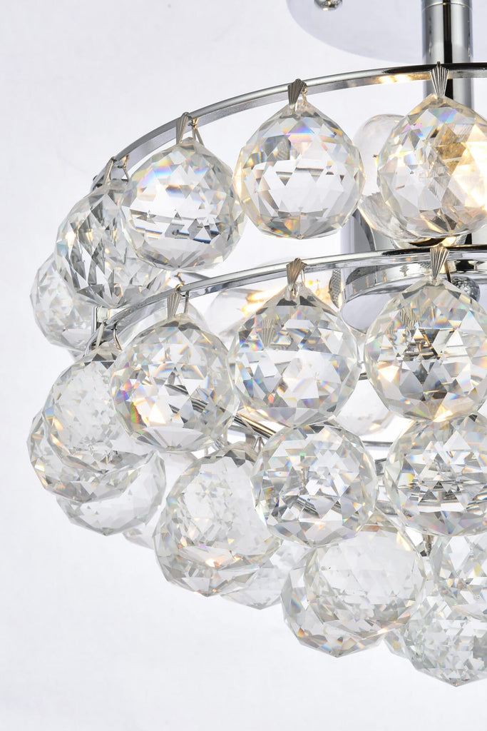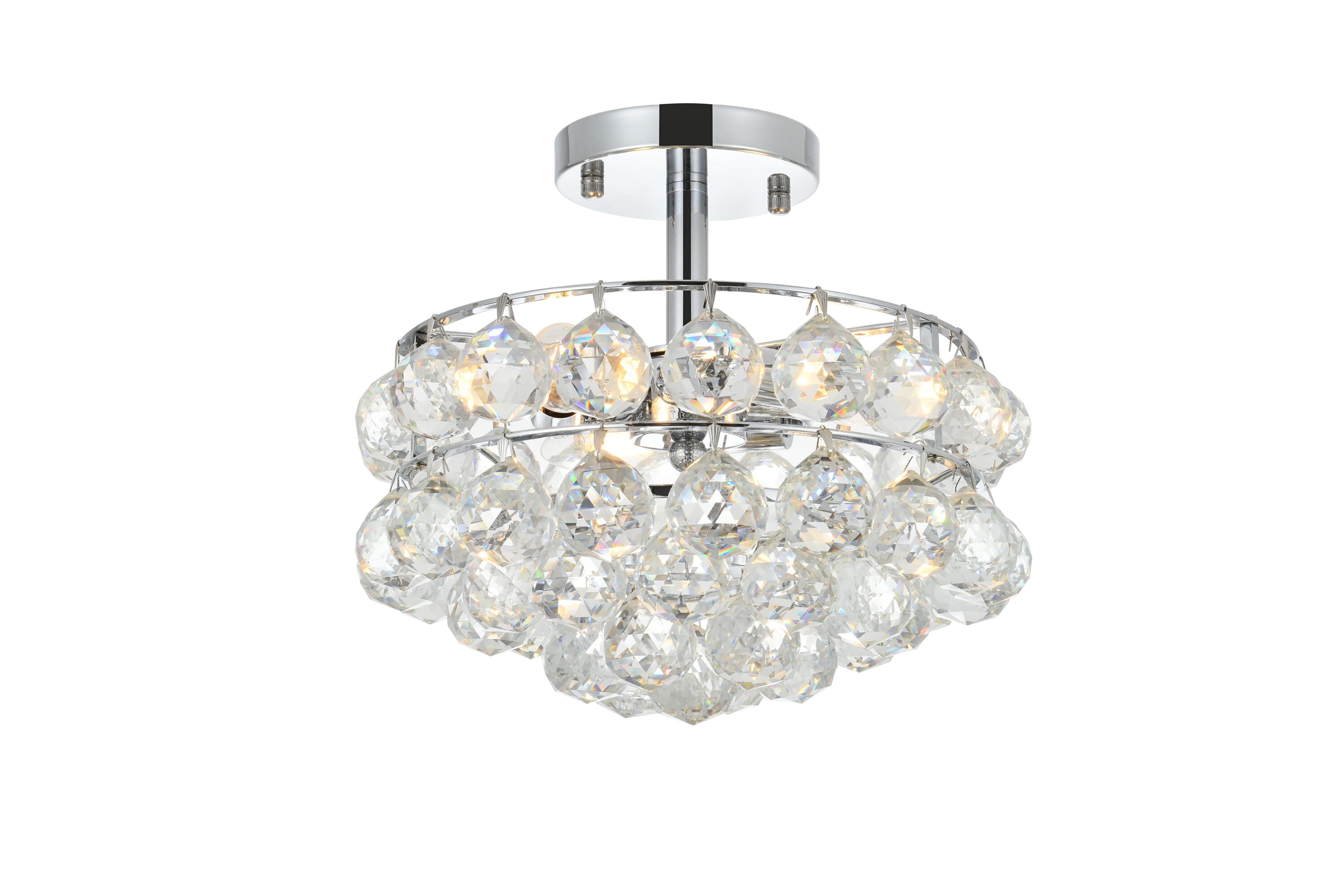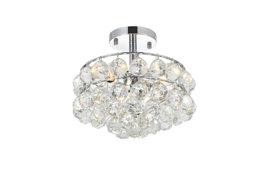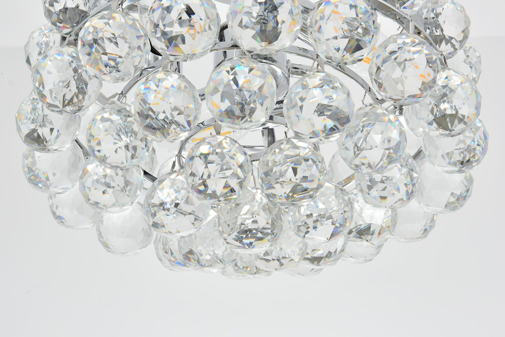 Dimensions Length: 12" Width: 12" Height: 10" Wire Length: 20" Specifications Product Type: Flush Mounts Voltage: 120V Dimmable: Yes Socket Type: E12 Number of Lights: 3 Wattage/Bulb: 40W Max/Nominal Watt: 120W Crystal/Glass Color: CLEAR Wire Included: Yes ETL: YES Harware Material: Iron Fixture Material: Iron and Crystal Product Shape: Round Assembly Required: YES Distressed Finish: NO Hardware Finish: chrome Bulb Included: No UL & ULC Standard: No Dry/Wet/Damp: Dry Weight: 12.5 Product Warranty: 1 year limited Shipment type: Small Parcel