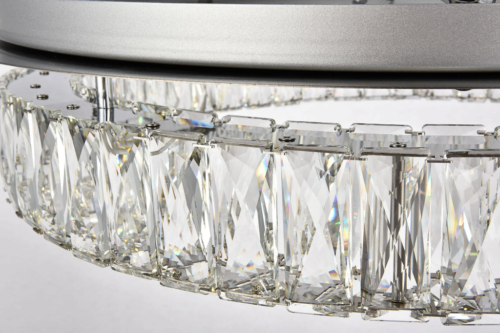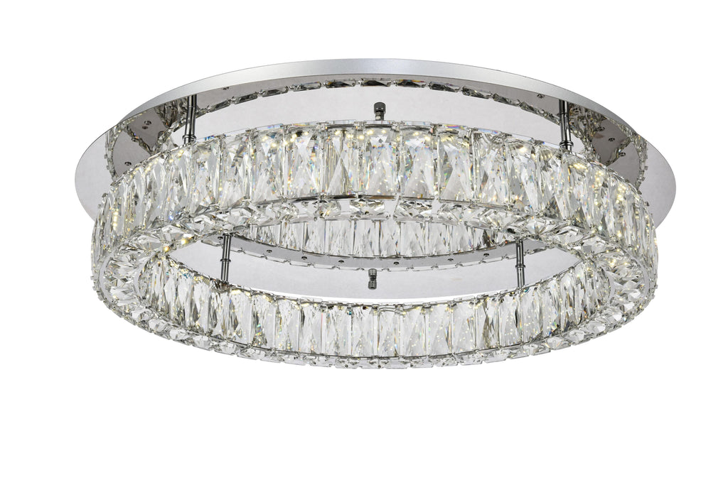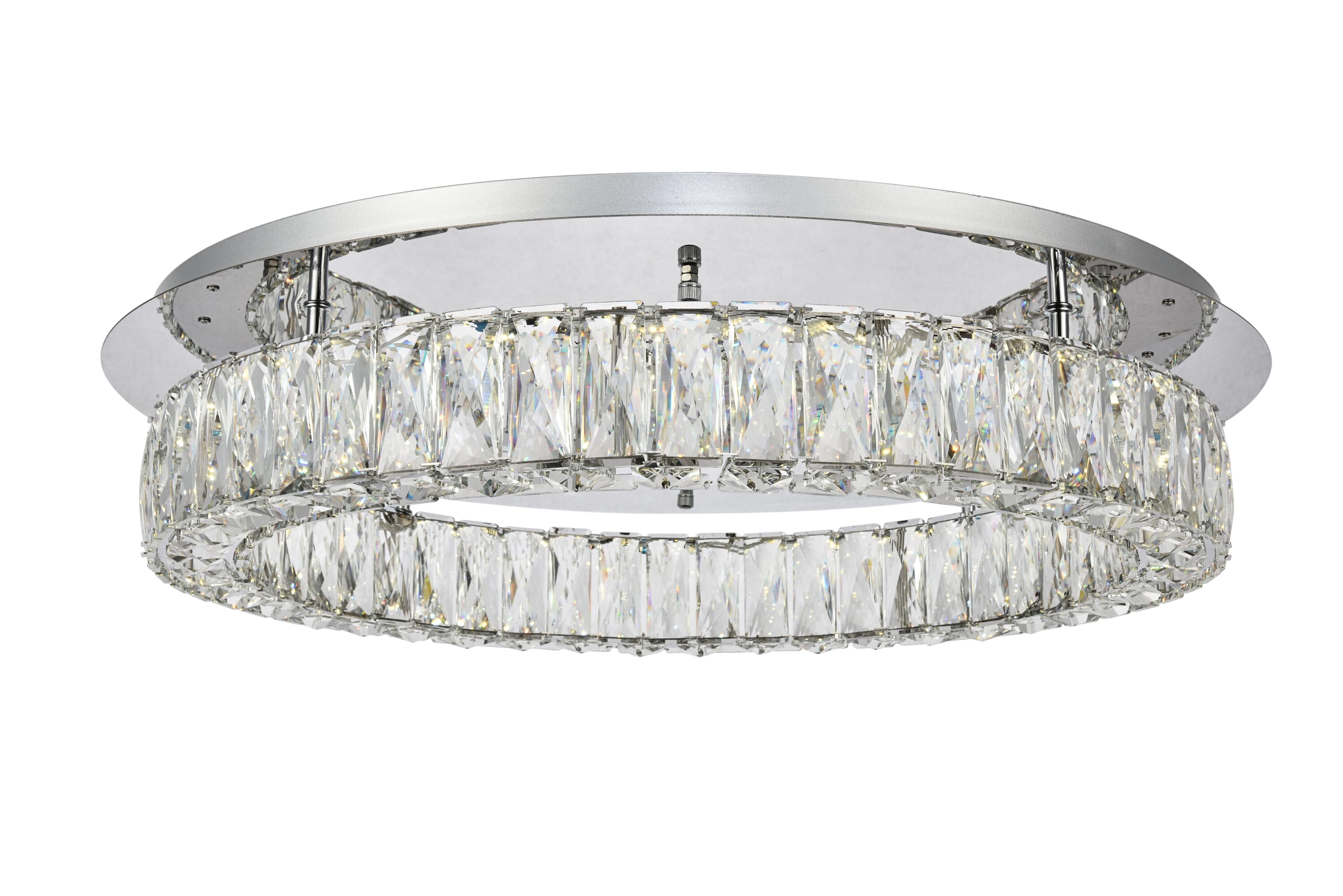 Dimensions Length: 25.6" Width: 25.6" Height: 5.1" Maximum Height: 5.1" Wire Length: 32" Specifications Product Type: Flush Mounts Voltage: 110V - 125V Dimmable: Yes Only Up To 90% Socket Type: Integrated LED Chip Number of Lights: LED Wattage/Bulb: 0.225 Max/Nominal Watt: 31.5 Crystal/Glass Color: Clear Wire Included: Yes Bulb Shape: Rectangle Harware Material: Stainless Steel Fixture Material: Stainless Steel and Crystal Product Shape: Flush Mounts Assembly Required: No Hardware Finish: Chrome UL & ULC Standard: UL,ULC Weight: 24 Product Warranty: 1 year limited Shipment type: Small Parcel
