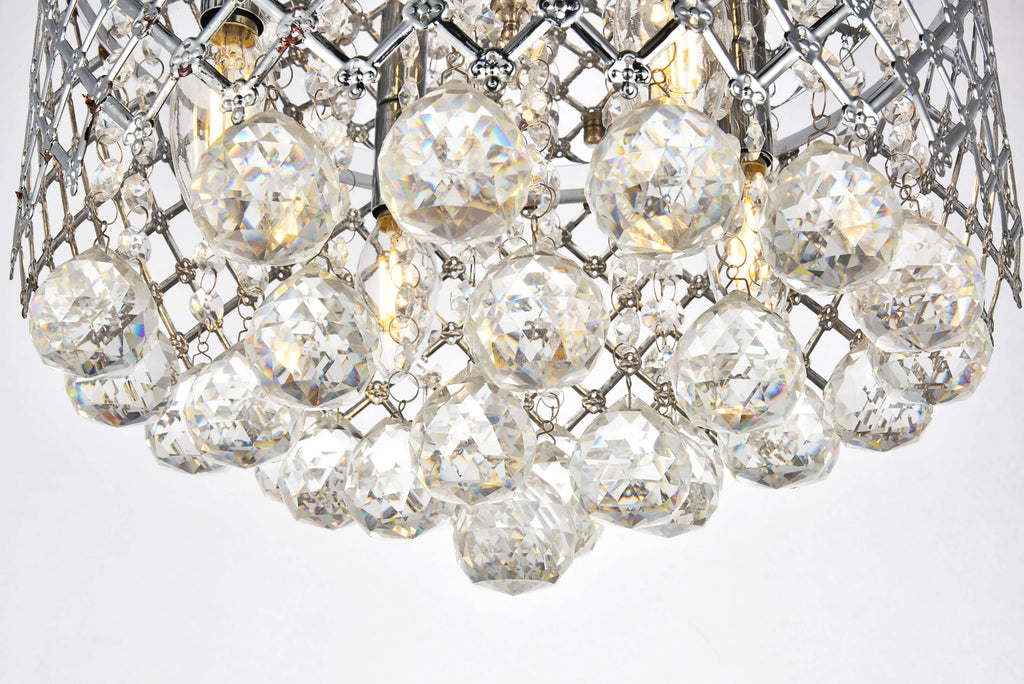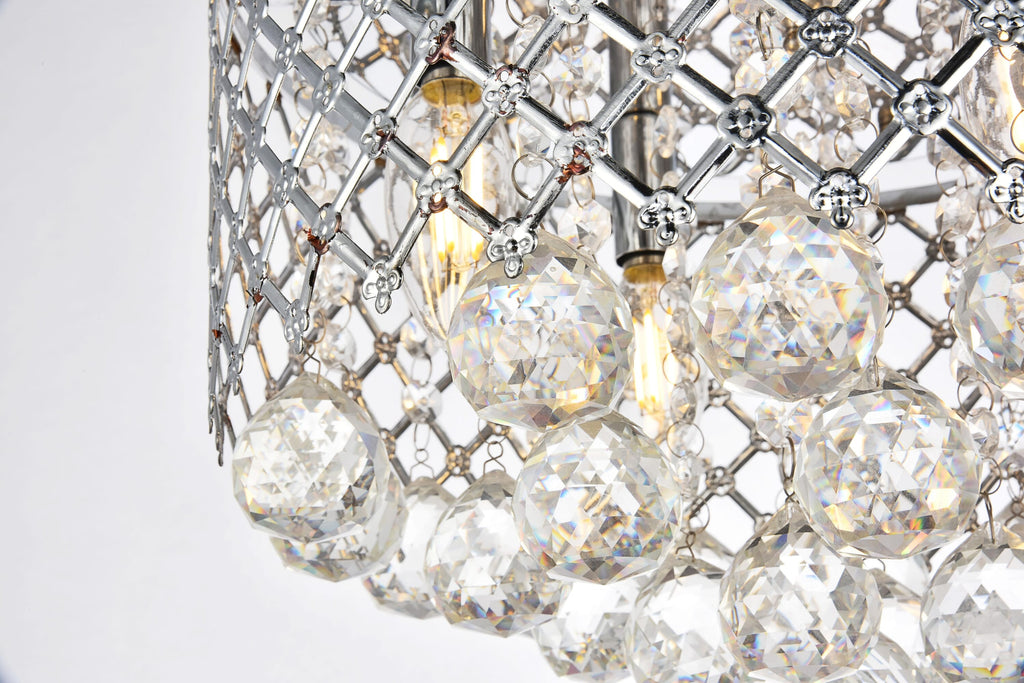 Dimensions Length: 13.5" Width: 13.5" Height: 9.4" Wire Length: 15.7" Specifications Product Type: Flush Mounts Voltage: 110V - 125V Dimmable: Yes Socket Type: E12 Number of Lights: 4 Wattage/Bulb: 40 Max/Nominal Watt: 160W Crystal/Glass Color: clear Wire Included: Yes Bulb Shape: B10 Harware Material: Iron and Crystal Fixture Material: Iron and Crystal Product Shape: Flush Mounts Assembly Required: Yes Hardware Finish: Chrome Bulb Included: No UL & ULC Standard: UL,ULC Dry/Wet/Damp: Dry Rated Weight: 9.5 Product Warranty: 1 year limited Shipment type: Small Parcel