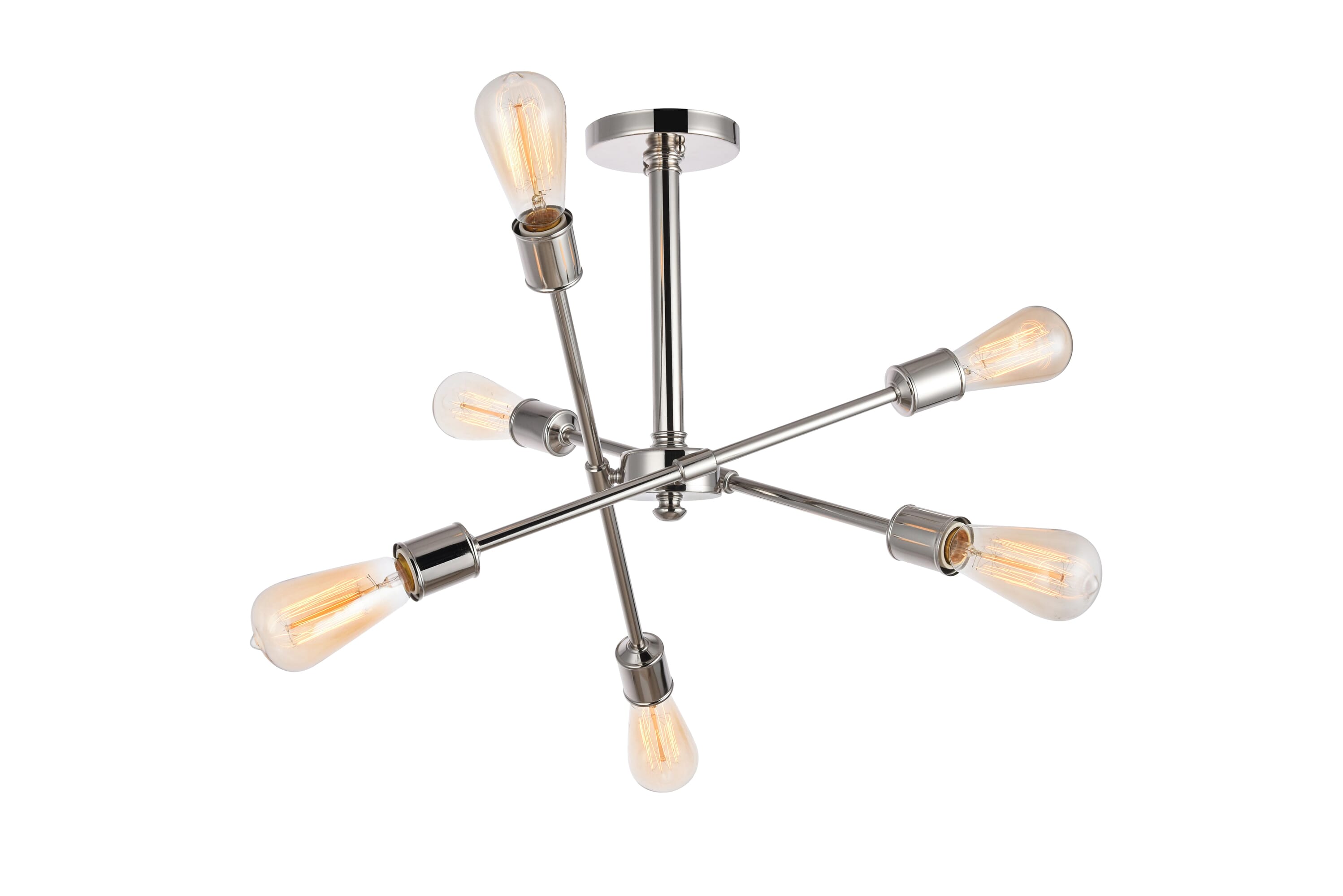 Dimensions Length: 17.1" Width: 17.1" Height: 16.6" Wire Length: 8" Specifications Product Type: Flush Mounts Voltage: 110V - 125V Dimmable: Yes Socket Type: E26 Number of Lights: 6 Wattage/Bulb: 60W Max/Nominal Watt: 360W Wire Included: Yes ETL: Yes Harware Material: steel Fixture Material: Metal Product Shape: Flush Mounts Assembly Required: No Hardware Finish: Polished nickel Weight: 3.9 Product Warranty: 1 year limited Shipment type: Small Parcel