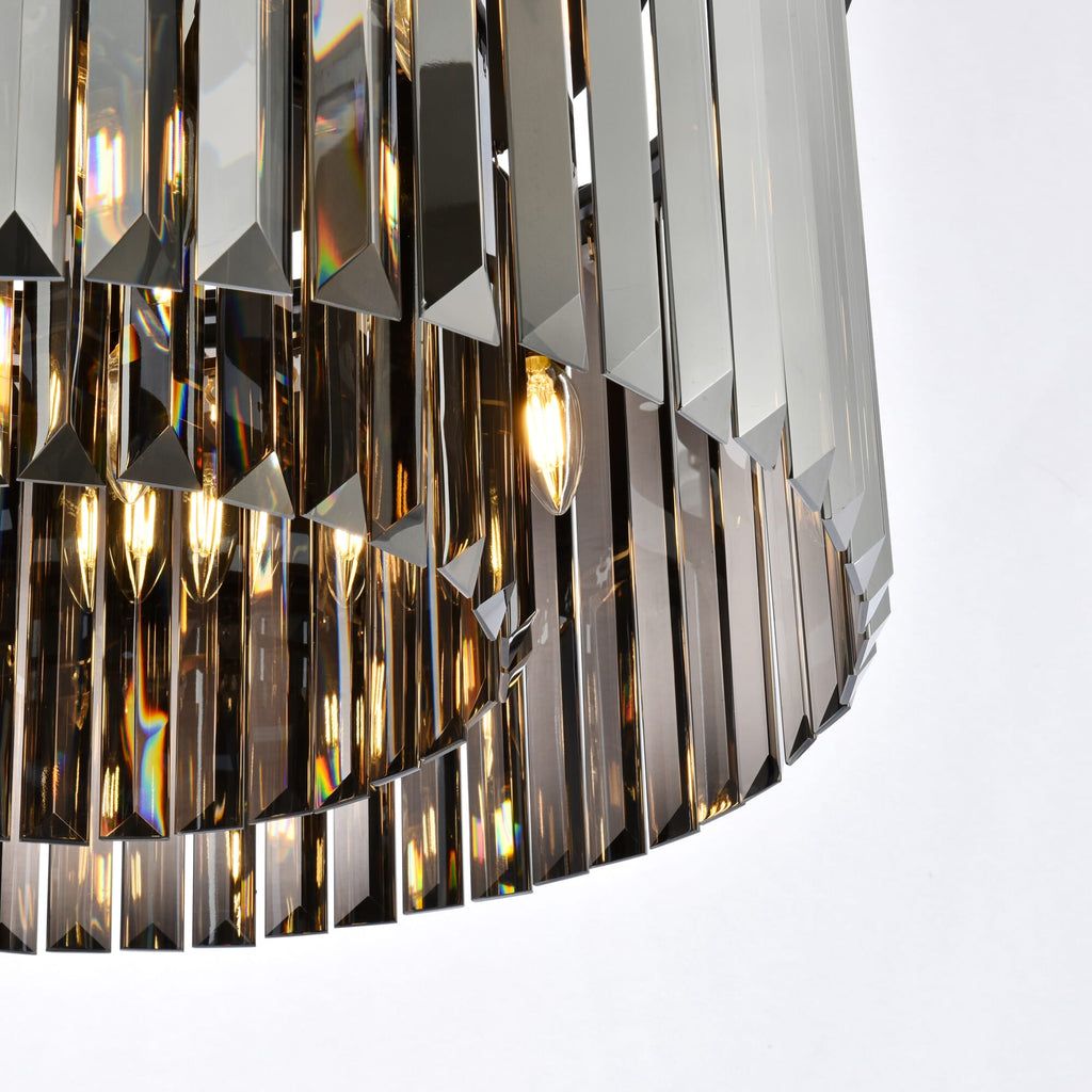 Dimensions Length: 26" Width: 26" Height: 13.5" Wire Length: 19.68" Specifications Product Type: Flush Mounts Voltage: 110V - 125V Dimmable: Yes Socket Type: E12 Number of Lights: 8 Wattage/Bulb: 60 Max/Nominal Watt: 480 Crystal/Glass Color: Silver Shade (Grey) Wire Included: Yes Bulb Shape: B10 Harware Material: Steel Fixture Material: Steel Product Shape: Flush Mounts Assembly Required: NO Hardware Finish: Matte Black Bulb Included: No UL & ULC Standard: UL,ULC Weight: 67.15 Product Warranty: 1 year limited Shipment type: Small Parcel