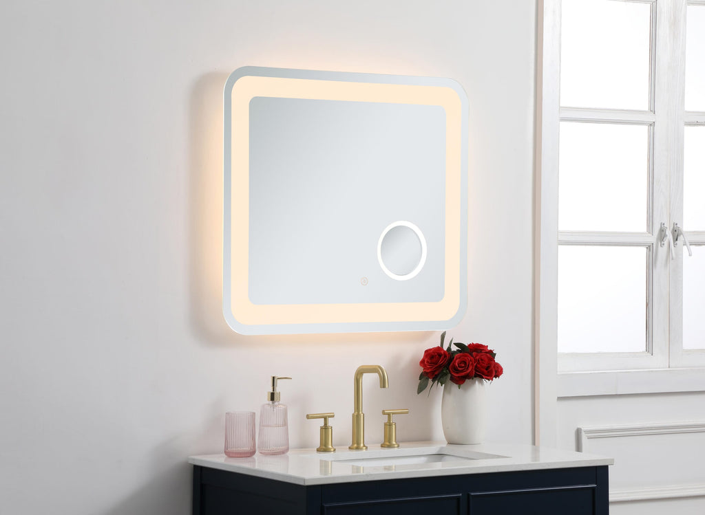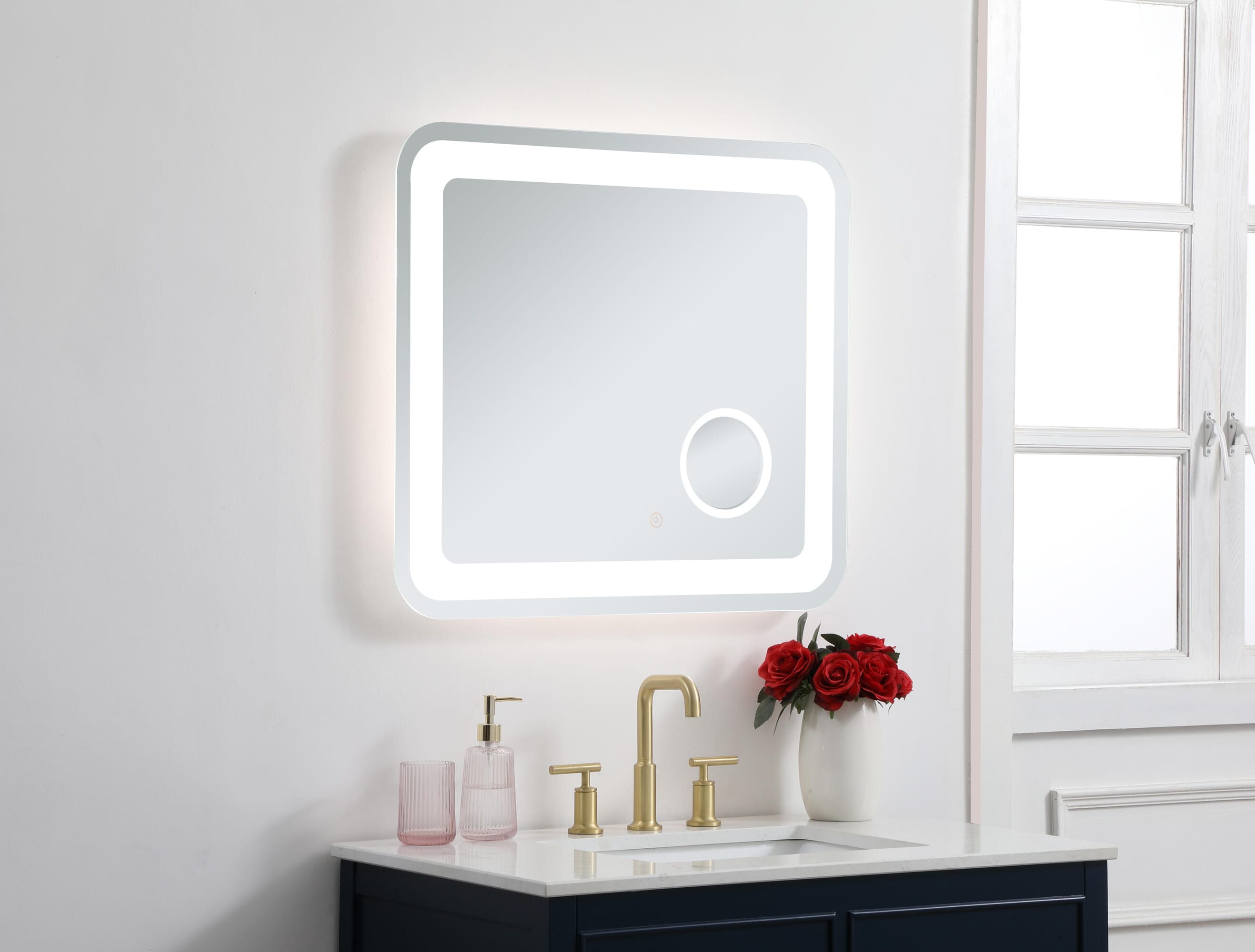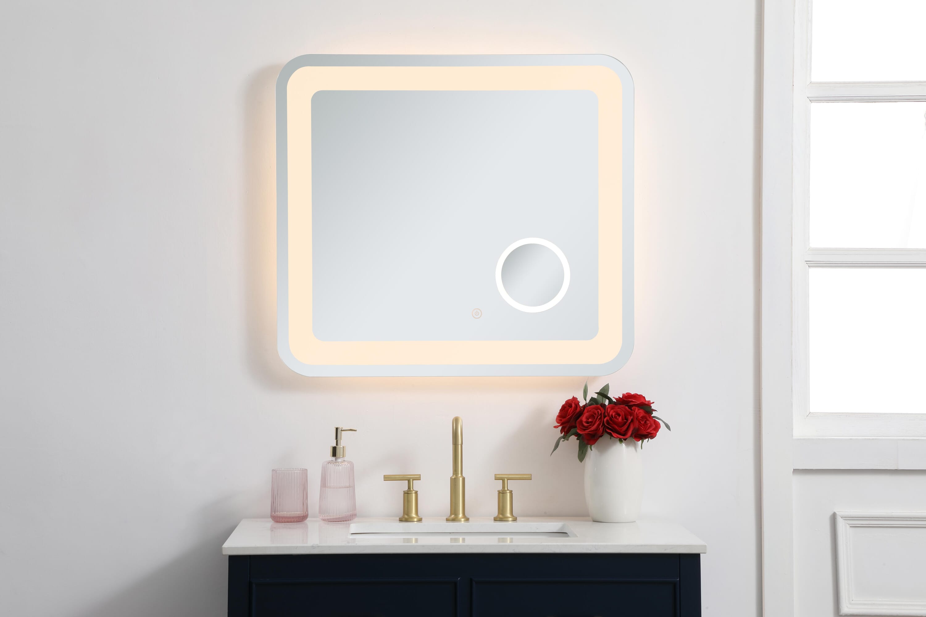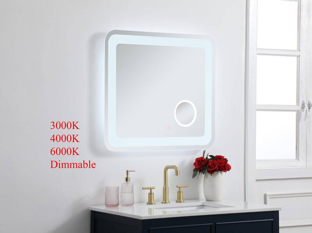 Dimensions Length: 30" Width: 27" Extension: 1.92" Wire Length: 59" Depth: 1.92" Specifications Product Type: Led Mirrors Voltage: 100V - 240V Dimmable: Yes Socket Type: LED Wattage/Bulb: 34.7W Power: 0.55 Output: 12VDC Max/Nominal Watt: 34.7W Wire Included: Yes Beam Angle: 120 Degree Color Temperature: 3000K + 4200K + 6400K CRI: 90 Current: 5.0A Energy Star: NO Led Type: 2835 Lens: Life Based On 3Hrs/Day (Years): 18 Lumen/Watt: 33 Lumens: 1180 Power Factor: 0.55 Watt Equivalent: 34.7W Watts: 34.7W Harware Material: Metal Fixture Material: Metal, Mirror, and LED Product Shape: Rectangle Assembly Required: No Distressed Finish: NO Hardware Finish: Glossy White Mirror Frame Shape: Rectangle Mirror Hanging Orientation: Horizontal Defogger: Yes Average Life (Hours): 20000+ Bulb Included: Yes UL & ULC Standard: Yes Mirror Type: 5mm thicknessSilver mirrror Frameless: Yes Dry/Wet/Damp: Damp Weight: 21.78 Product Warranty: 1 year limited Shipment type: Small Parcel