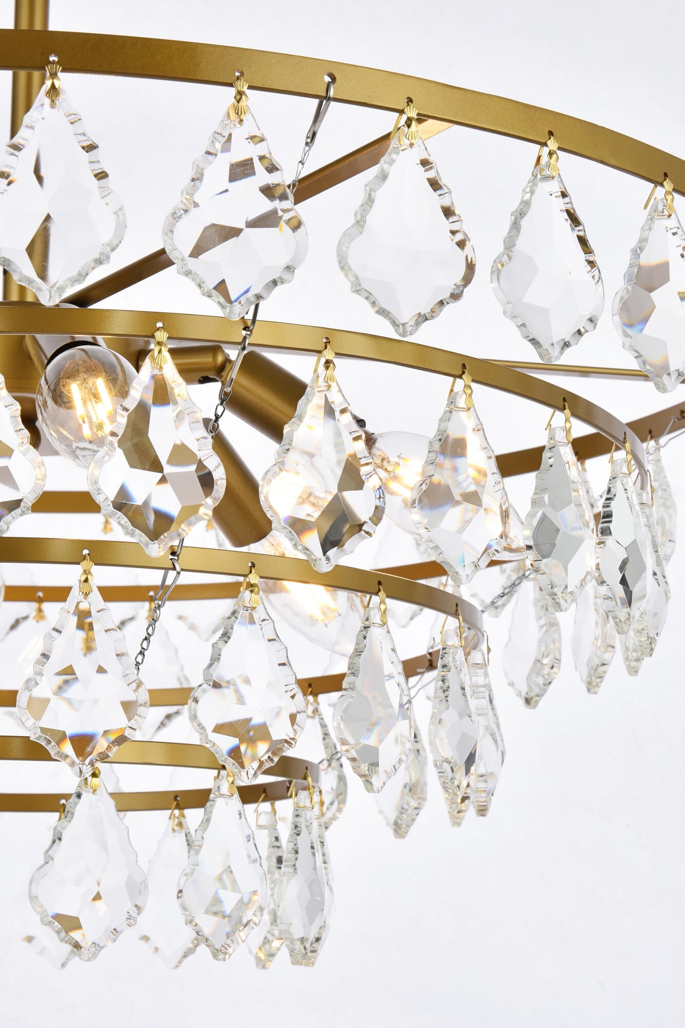 Dimensions Chain/Rod Length: 46" Length: 24" Width: 24" Height: 10" Maximum Height: 58" Wire Length: 75" Specifications Product Type: Pendants Hanging Device: Rod Voltage: 120V Dimmable: Yes Socket Type: E12 Number of Lights: 6 Wattage/Bulb: 40W Max/Nominal Watt: 240W Crystal/Glass Color: CLEAR Wire Included: Yes ETL: YES Harware Material: Iron Fixture Material: Iron and Crystal Product Shape: Round Assembly Required: YES Distressed Finish: NO Hardware Finish: brass Bulb Included: No UL & ULC Standard: No Dry/Wet/Damp: Dry Weight: 11.7 Product Warranty: 1 year limited Shipment type: Small Parcel