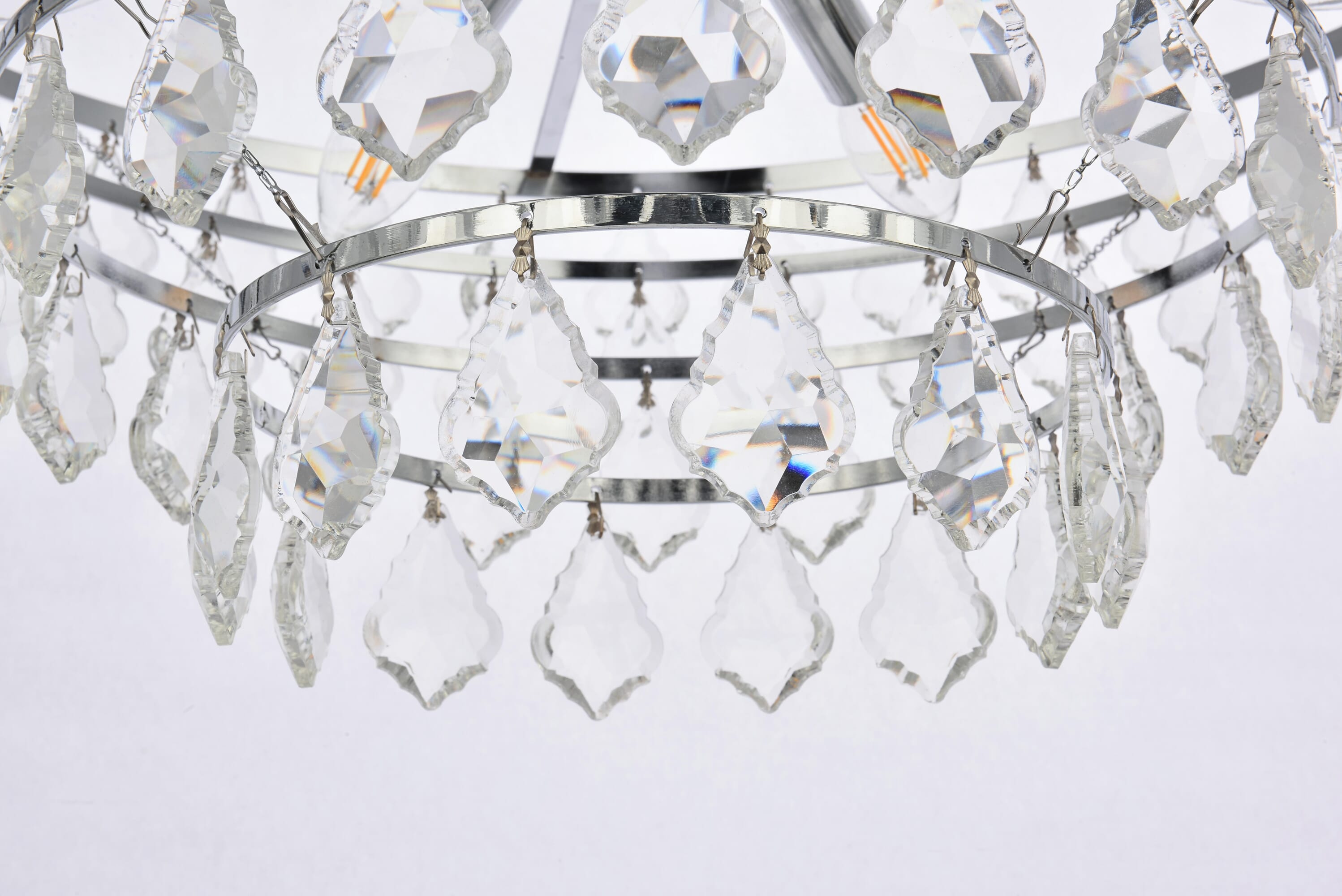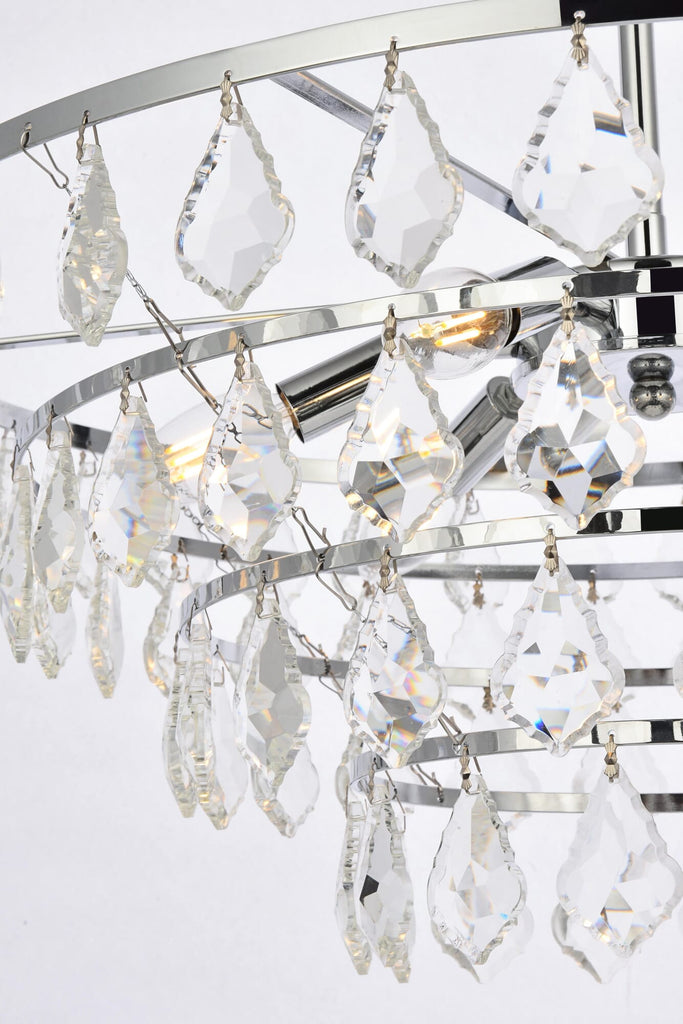 Dimensions Chain/Rod Length: 46" Length: 24" Width: 24" Height: 10" Maximum Height: 58" Wire Length: 75" Specifications Product Type: Pendants Hanging Device: Rod Voltage: 120V Dimmable: Yes Socket Type: E12 Number of Lights: 6 Wattage/Bulb: 40W Max/Nominal Watt: 240W Crystal/Glass Color: CLEAR Wire Included: Yes ETL: YES Harware Material: Iron Fixture Material: Iron and Crystal Product Shape: Round Assembly Required: YES Distressed Finish: NO Hardware Finish: chrome Bulb Included: No UL & ULC Standard: No Dry/Wet/Damp: Dry Weight: 11.7 Product Warranty: 1 year limited Shipment type: Small Parcel