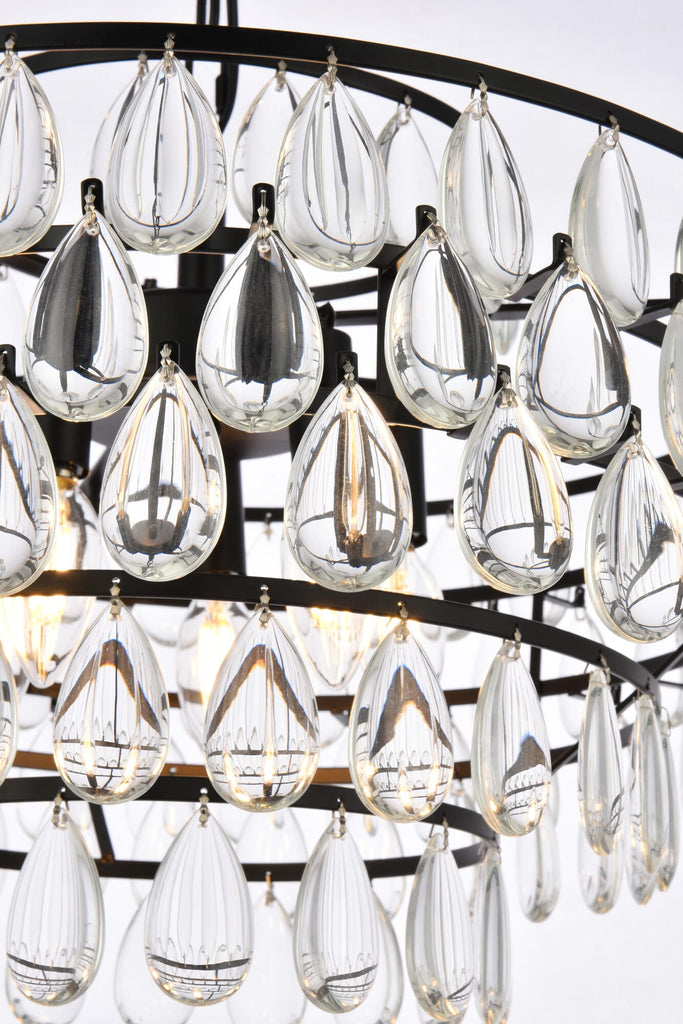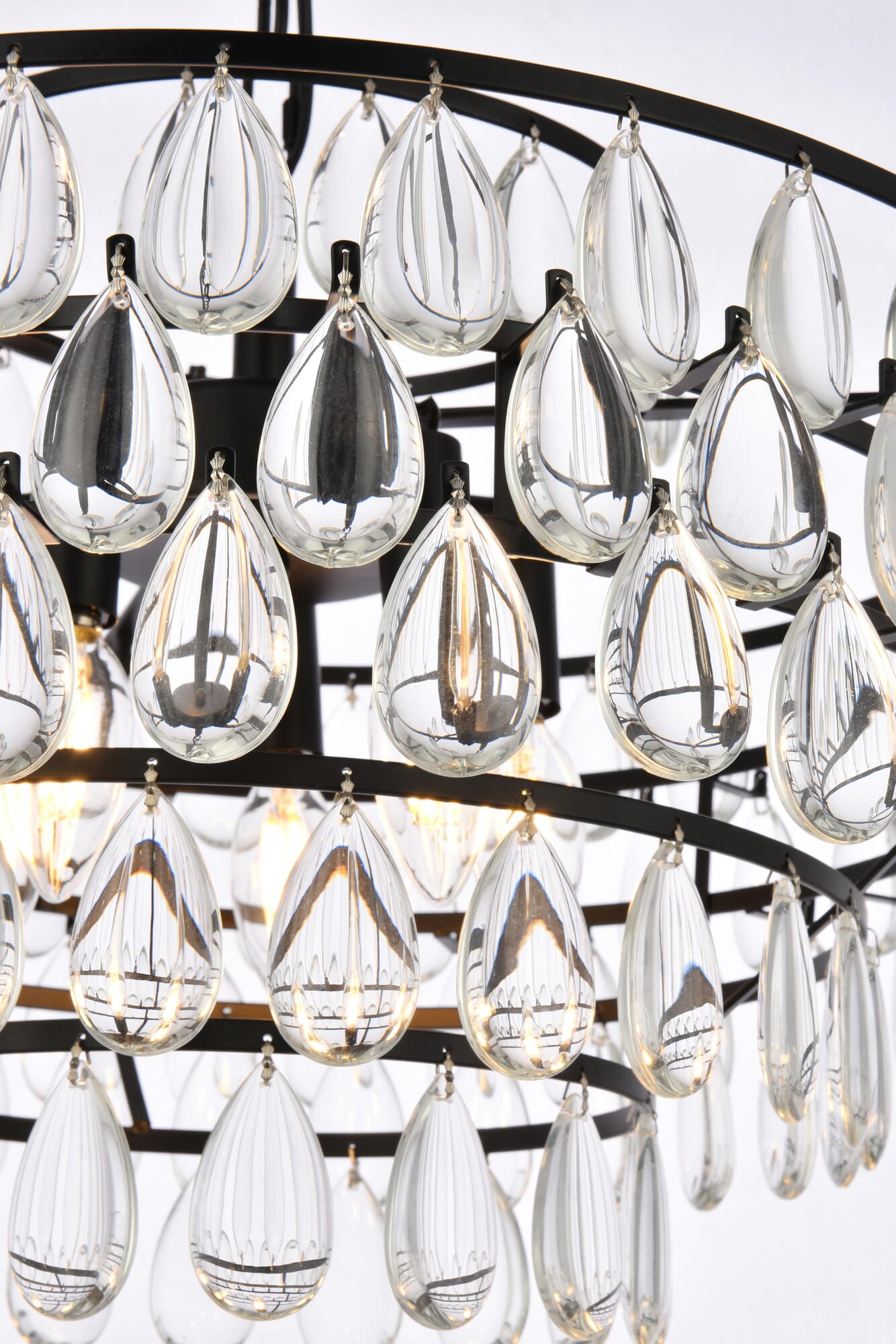 Dimensions Chain/Rod Length: 59" Length: 20" Width: 20" Height: 12.5" Maximum Height: 72" Wire Length: 79" Specifications Product Type: Pendants Hanging Device: Chain Voltage: 120V Dimmable: Yes Socket Type: E12 Number of Lights: 5 Wattage/Bulb: 40W Max/Nominal Watt: 200W Crystal/Glass Color: CLEAR Wire Included: Yes ETL: YES Harware Material: Iron Fixture Material: Iron and Crystal Product Shape: Round Assembly Required: YES Distressed Finish: NO Hardware Finish: black Bulb Included: No UL & ULC Standard: No Dry/Wet/Damp: Dry Weight: 16 Product Warranty: 1 year limited Shipment type: Small Parcel