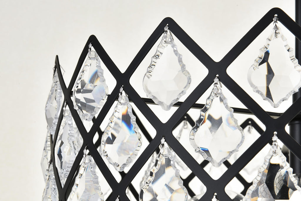 Dimensions Chain/Rod Length: 59" Length: 13" Width: 13" Height: 9.5" Maximum Height: 75" Wire Length: 79" Specifications Product Type: Pendants Hanging Device: Chain Voltage: 120V Dimmable: Yes Socket Type: E12 Number of Lights: 3 Wattage/Bulb: 40W Max/Nominal Watt: 120W Crystal/Glass Color: CLEAR Wire Included: Yes ETL: YES Harware Material: Iron Fixture Material: Iron and Crystal Product Shape: Round Assembly Required: YES Distressed Finish: NO Hardware Finish: black Bulb Included: No UL & ULC Standard: No Dry/Wet/Damp: Dry Weight: 6 Product Warranty: 1 year limited Shipment type: Small Parcel
