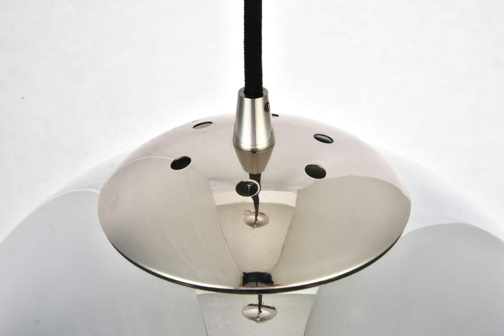 Dimensions Chain/Rod Length: 60" Length: 12" Width: 12" Height: 12" Maximum Height: 60" Wire Length: 60" Specifications Product Type: Pendants Hanging Device: Cord Voltage: 110V - 125V Dimmable: Yes Socket Type: E26 Number of Lights: 1 Wattage/Bulb: 40 Max/Nominal Watt: 40 Wire Included: Yes Bulb Shape: T14 Harware Material: Steel Fixture Material: Metal and Glass Product Shape: Pendants Assembly Required: YES Hardware Finish: Polished Nickel Bulb Included: No UL & ULC Standard: UL,ULC Weight: 2.7 Product Warranty: 1 year limited Shipment type: Small Parcel