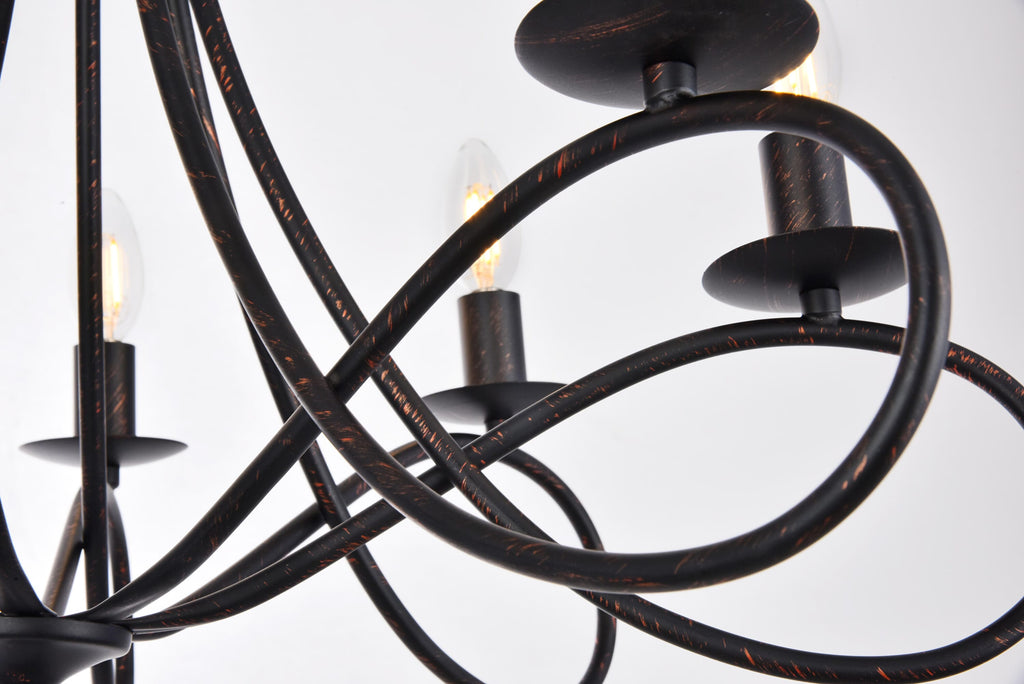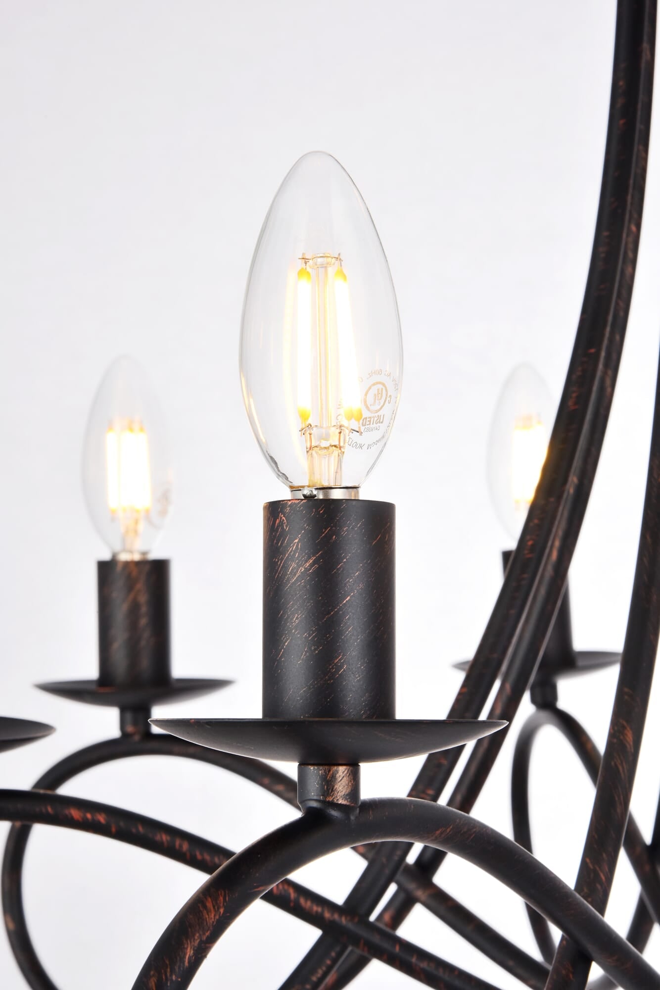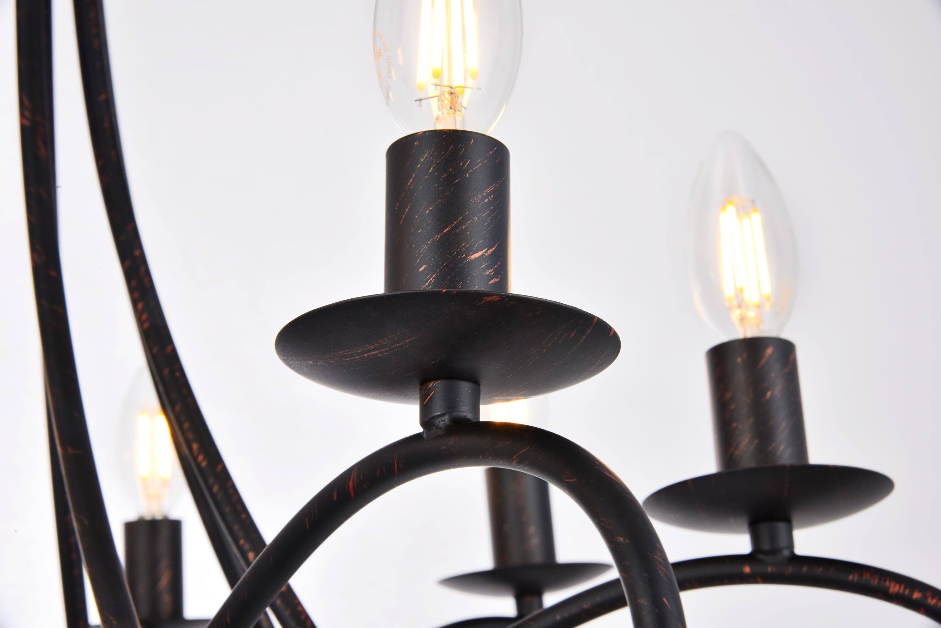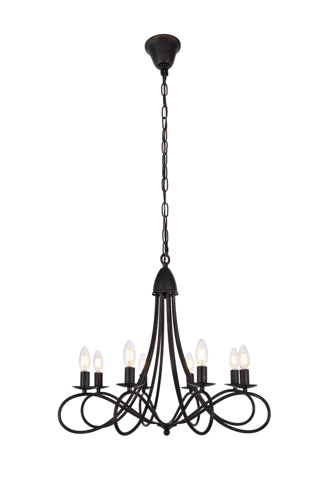 Dimensions Chain/Rod Length: 60" Length: 28" Width: 28" Height: 23" Maximum Height: 83" Wire Length: 72" Specifications Product Type: Pendants Hanging Device: Chain Voltage: 110V - 125V Dimmable: Yes Socket Type: E12 Number of Lights: 8 Wattage/Bulb: 60 Max/Nominal Watt: 480 Wire Included: Yes Bulb Shape: B10 Harware Material: Steel Fixture Material: Metal Product Shape: Pendants Assembly Required: NO Hardware Finish: Dark Bronze Bulb Included: No UL & ULC Standard: UL,ULC Weight: 11 Product Warranty: 1 year limited Shipment type: Small Parcel