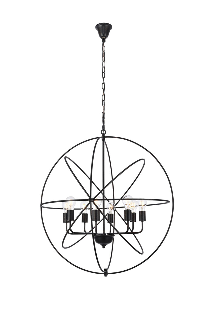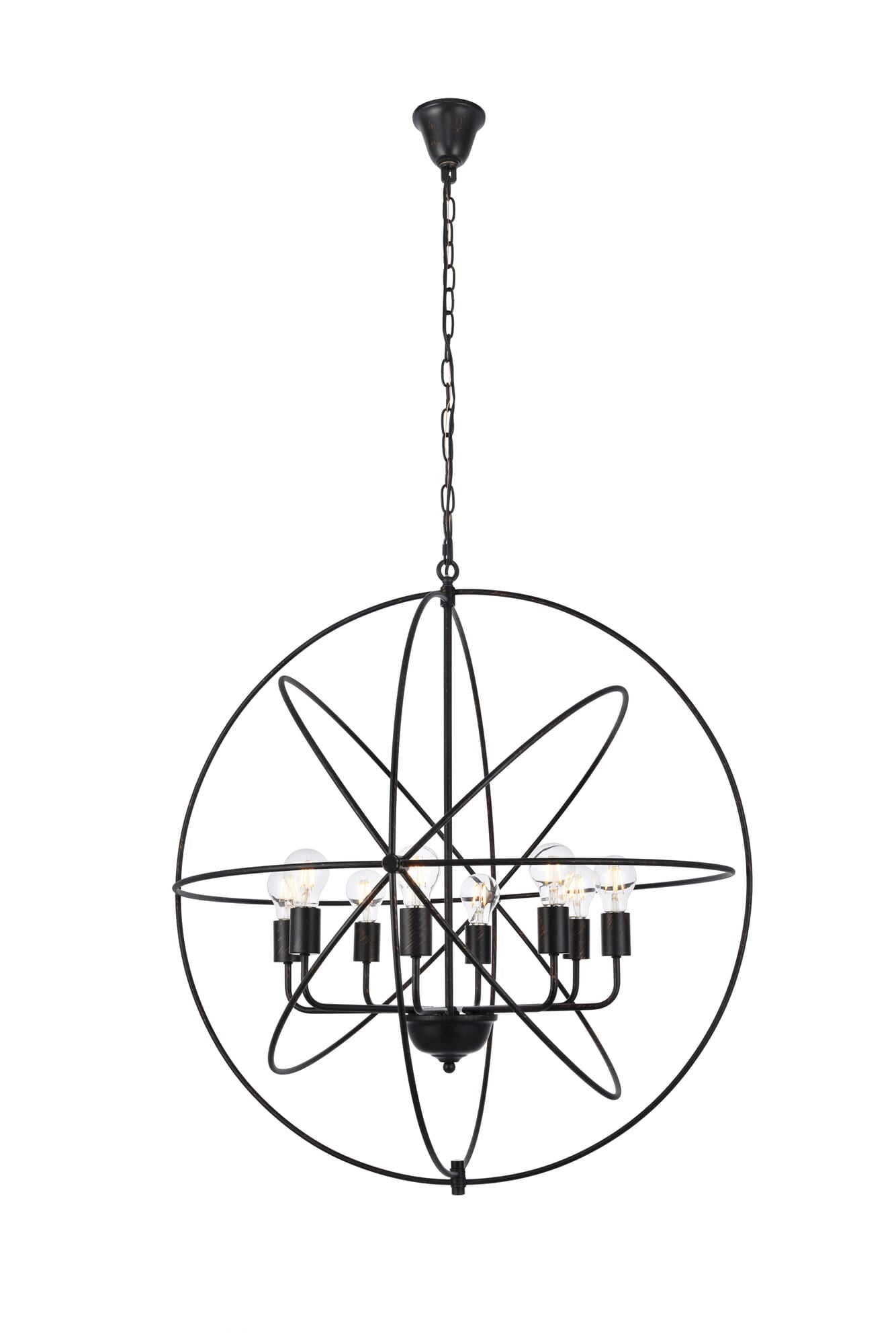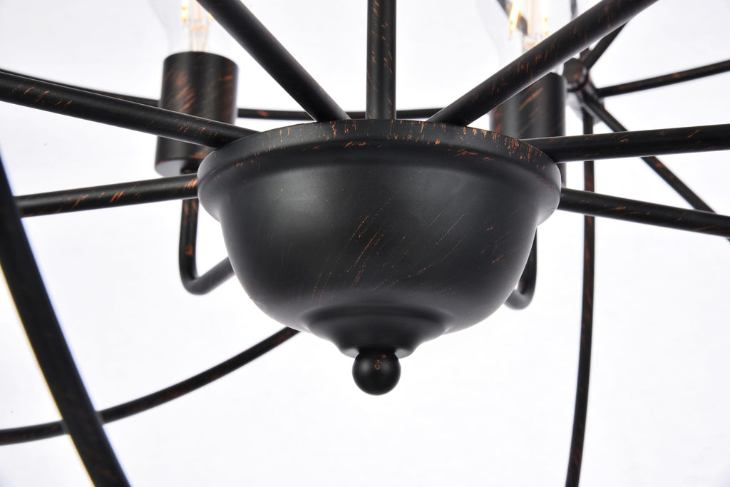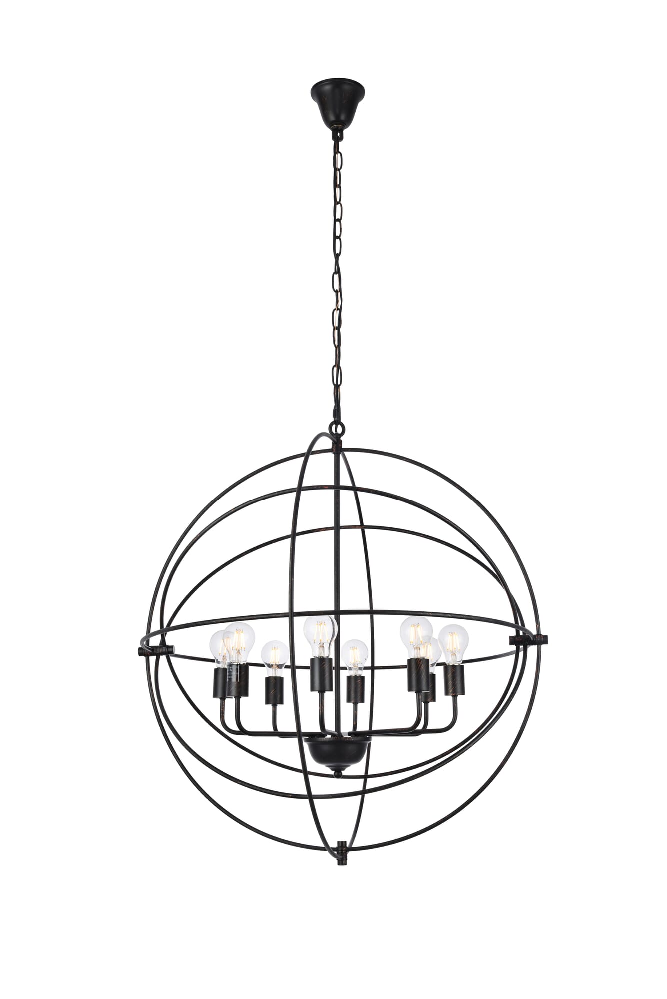 Dimensions Chain/Rod Length: 60" Length: 32" Width: 32" Height: 33" Maximum Height: 93" Wire Length: 72" Specifications Product Type: Pendants Hanging Device: Chain Voltage: 110V - 125V Dimmable: Yes Socket Type: E26 Number of Lights: 8 Wattage/Bulb: 60 Max/Nominal Watt: 480 Wire Included: Yes Harware Material: Steel Fixture Material: Metal Product Shape: Pendants Assembly Required: NO Hardware Finish: Dark Bronze Bulb Included: No UL & ULC Standard: UL,ULC Weight: 16 Product Warranty: 1 year limited Shipment type: Small Parcel