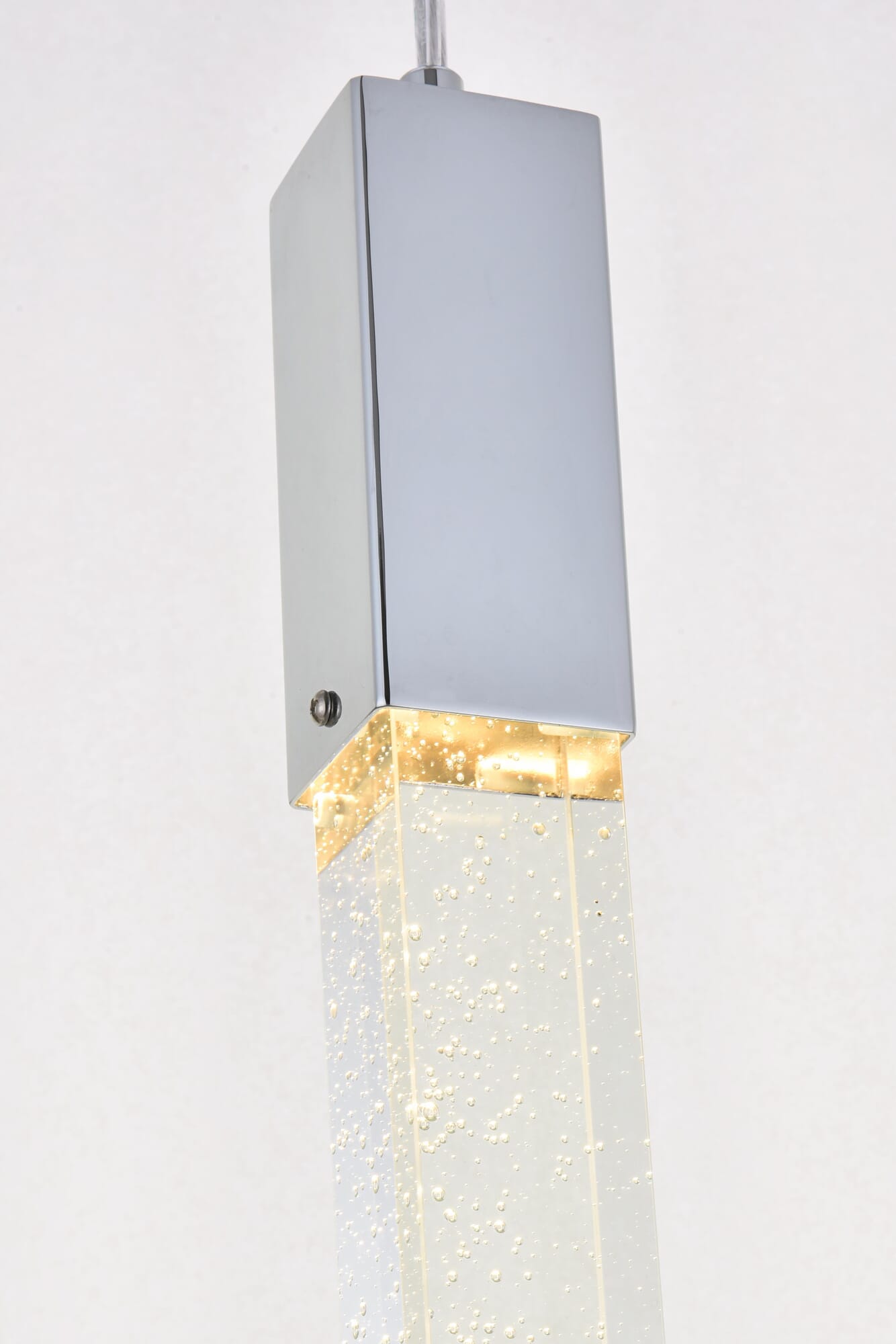 Dimensions Chain/Rod Length: 144" Length: 5" Width: 5" Height: 24" Maximum Height: 144" Wire Length: 144" Specifications Product Type: Pendants Hanging Device: Cord Voltage: 110V - 125V Dimmable: No Socket Type: GU10 Number of Lights: 1 Wattage/Bulb: 3W Max/Nominal Watt: 3W Crystal/Glass Color: Clear Wire Included: Yes ETL: YES Harware Material: Metal Fixture Material: Metal and Crystal Product Shape: Pendants Assembly Required: YES Hardware Finish: Chrome Bulb Included: Yes Dry/Wet/Damp: Dry Weight: 8 Product Warranty: 1 year limited Shipment type: small parcel