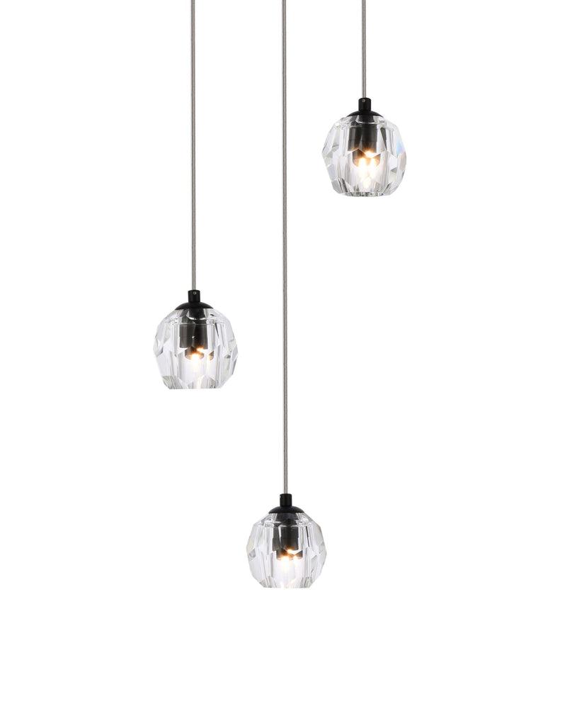 Dimensions Chain/Rod Length: 132" Length: 11.8" Width: 11.8" Height: 3.7" 137 132 Specifications Product Type: Pendants Hanging Device: Steel Wire Voltage: 110V - 120V Socket Type: G9 Number of Lights: 3 Wattage/Bulb: 40W Max/Nominal Watt: 120W Crystal/Glass Color: clear Wire Included: Yes Bulb Shape: T4 Harware Material: Iron and stainless steel Fixture Material: Stainless Steel and Crystal Product Shape: Pendants Assembly Required: NO Distressed Finish: No Hardware Finish: Black Dry/Wet/Damp: Dry Weight: 7 Product Warranty: 1 year limited Shipment type: Small Parcel