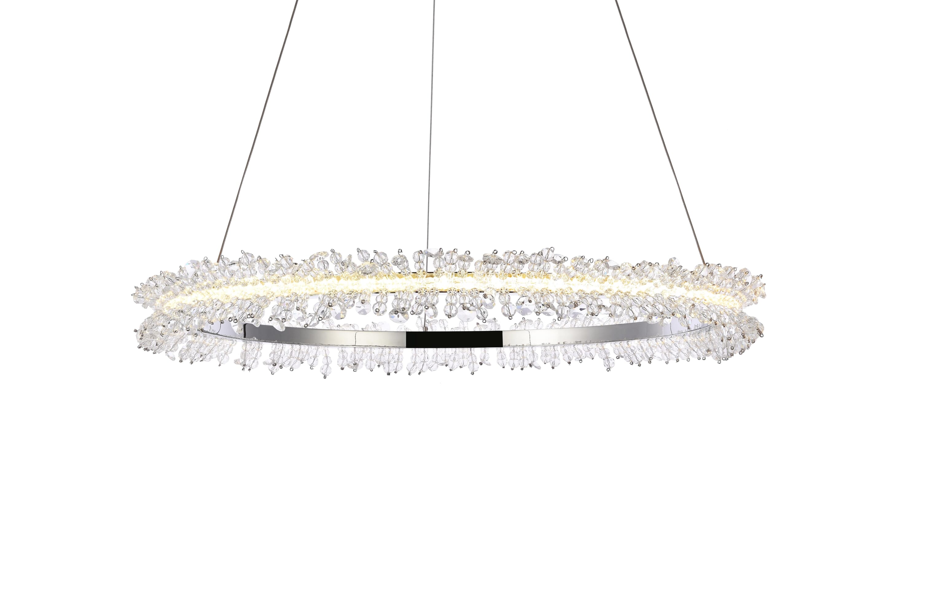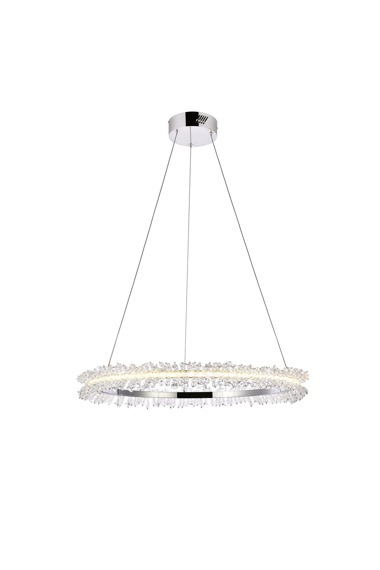 Dimensions Chain/Rod Length: 78.7" Length: 26" Width: 26" Height: 2.8" Maximum Height: 60" Wire Length: 78.7" Specifications Product Type: Pendants Hanging Device: Steel Wire Voltage: 110V - 120V Socket Type: Max/Nominal Watt: 28W Crystal/Glass Color: clear Wire Included: Yes Harware Material: Aluminum Fixture Material: Aluminum Product Shape: Pendants Assembly Required: No Distressed Finish: No Hardware Finish: Chrome Dry/Wet/Damp: Dry Weight: 7.48 Product Warranty: 1 year limited Shipment type: Small Parcel