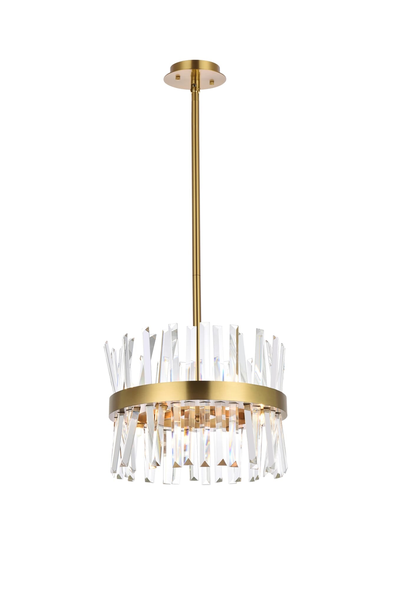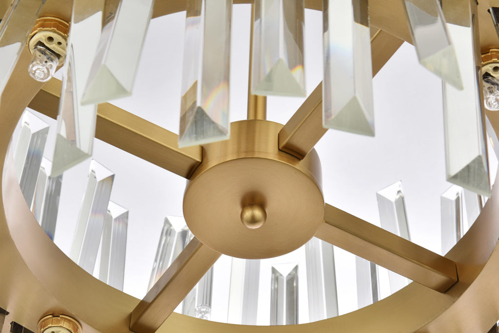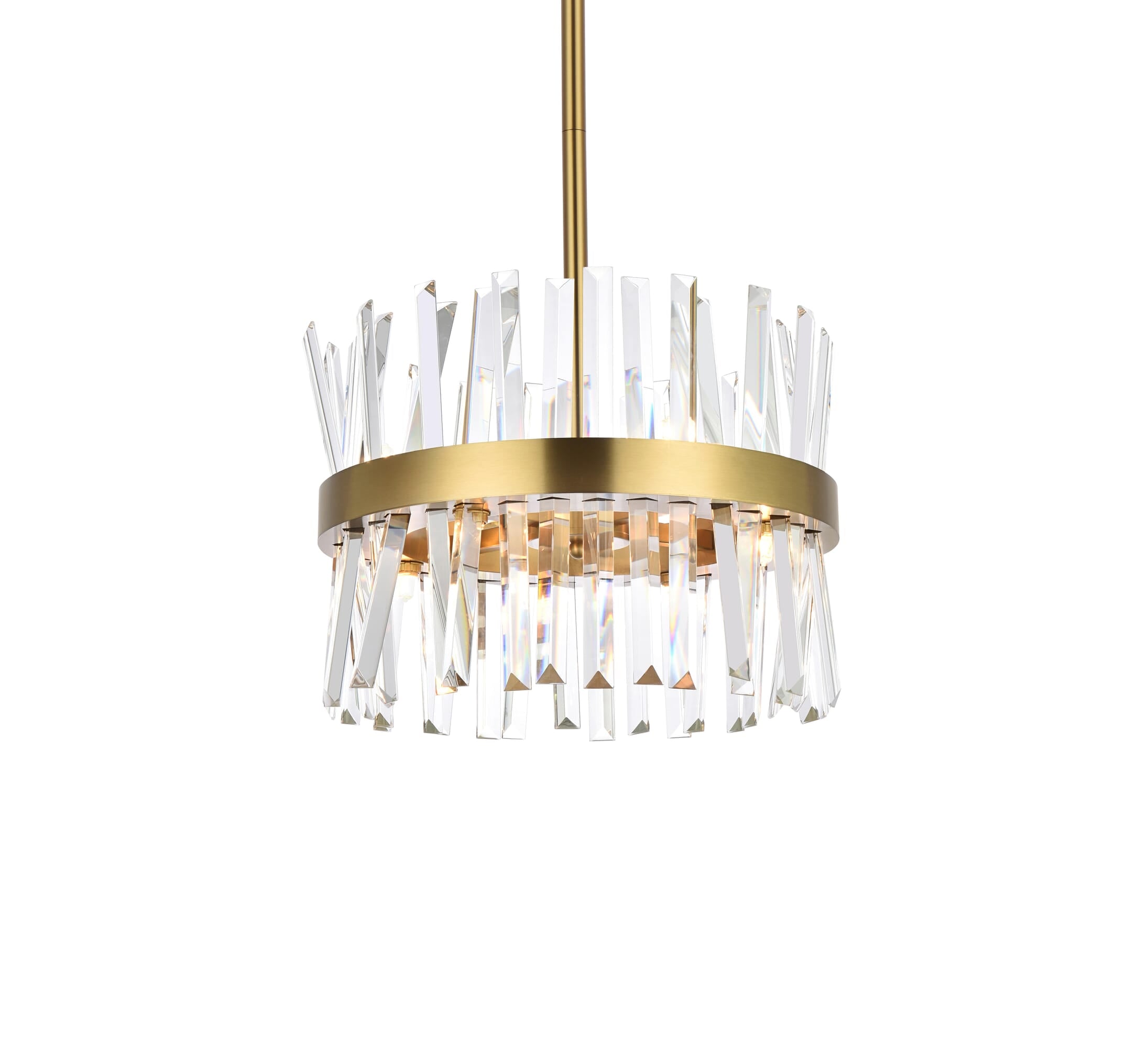 Dimensions Chain/Rod Length: 46" Length: 16" Width: 16" Height: 12" Maximum Height: 57.5" Wire Length: 75" Specifications Product Type: Pendants Hanging Device: Rod Voltage: 110V - 125V Dimmable: Yes Socket Type: G9 Number of Lights: 8 Wattage/Bulb: 20W Max/Nominal Watt: 160W Crystal/Glass Color: Clear Wire Included: Yes ETL: Yes Harware Material: Iron Fixture Material: Iron and Crystal Product Shape: Round Assembly Required: Yes Distressed Finish: No Hardware Finish: Satin Gold Bulb Included: No Dry/Wet/Damp: Dry Weight: 16.9 Product Warranty: 1 year limited Shipment type: small parcel