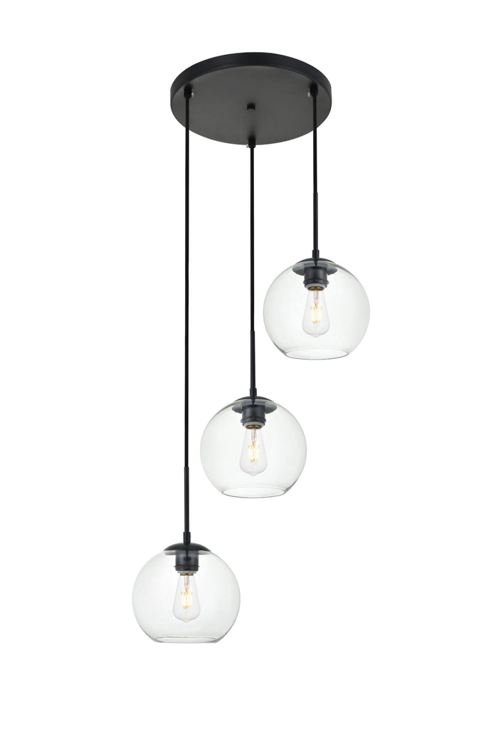 Dimensions Chain/Rod Length: 79" Length: 18.1" Width: 18.1" Height: 8" Maximum Height: 87" Wire Length: 79" Specifications Product Type: Pendants Hanging Device: Cord Voltage: 110V - 125V Dimmable: Yes Socket Type: E26 Number of Lights: 3 Wattage/Bulb: 40 Max/Nominal Watt: 120 Wire Included: Yes ETL: Yes Harware Material: Iron Fixture Material: Iron and Glass Product Shape: Pendants Assembly Required: No Hardware Finish: Black Dry/Wet/Damp: Dry Rated Weight: 5.8 Product Warranty: 1 year limited Shipment type: Small Parcel