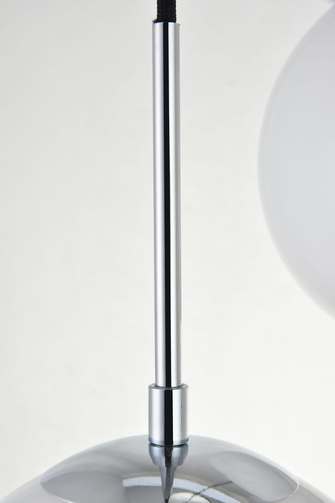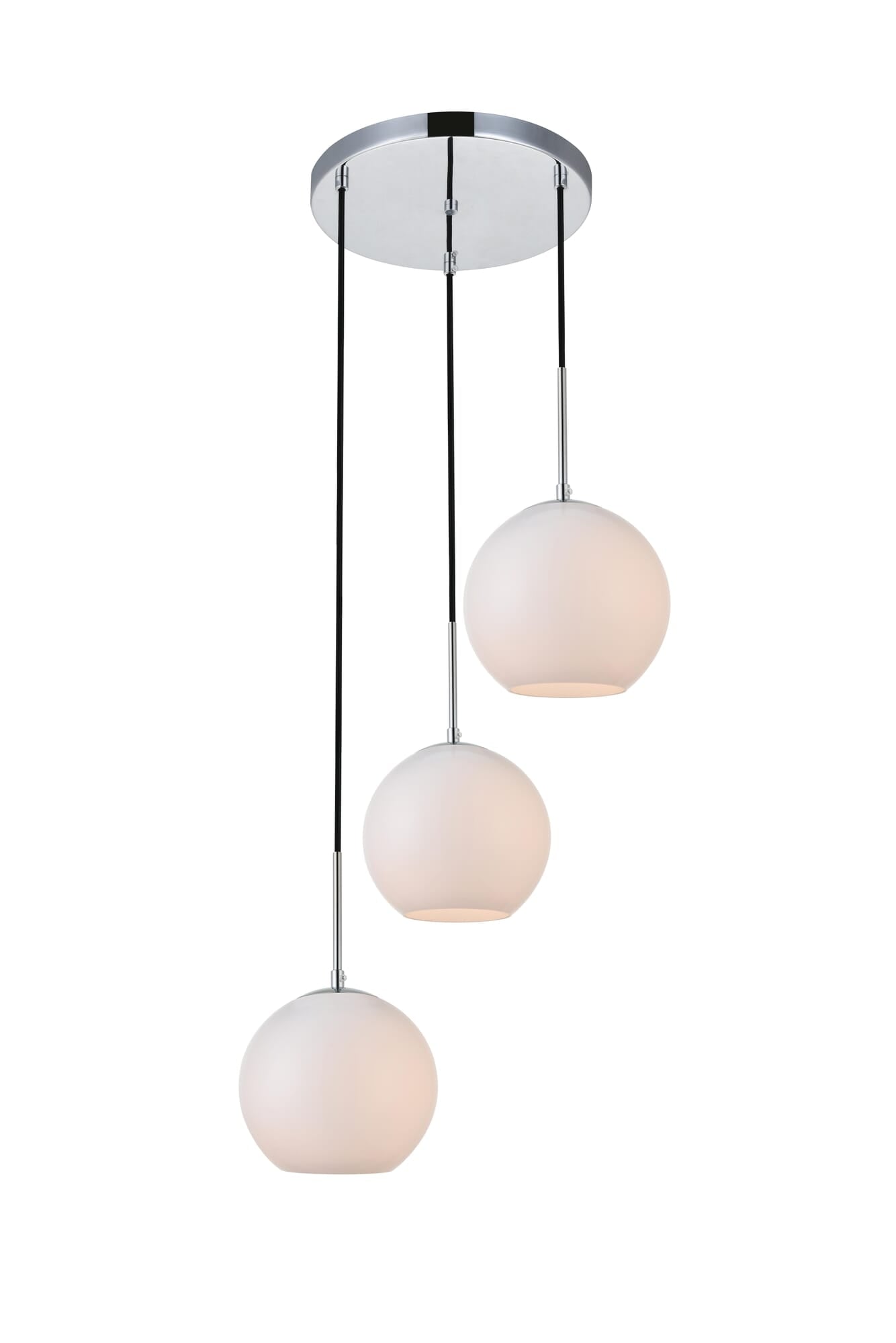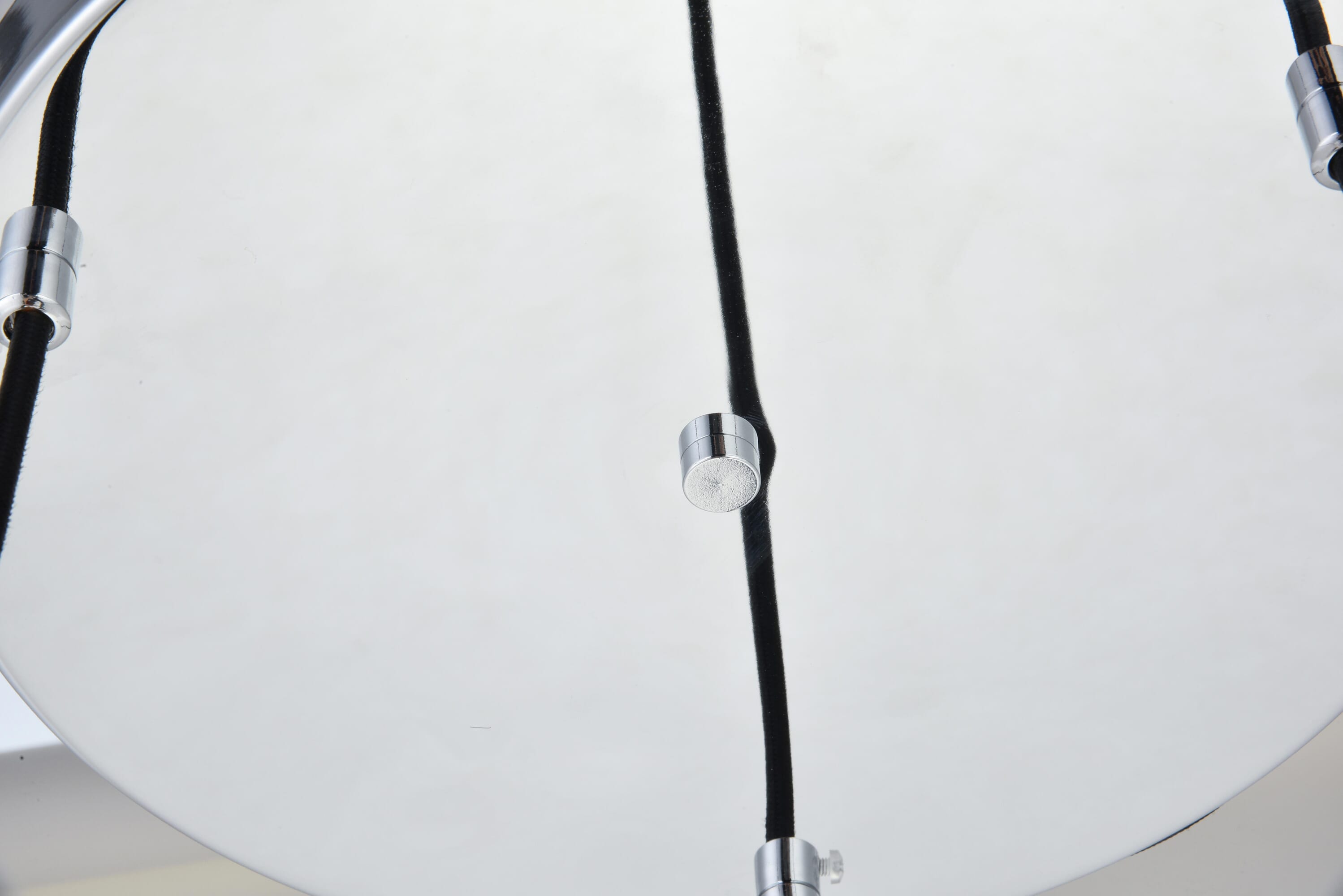 Dimensions Chain/Rod Length: 79" Length: 18.1" Width: 18.1" Height: 8" Maximum Height: 87" Wire Length: 79" Specifications Product Type: Pendants Hanging Device: Cord Voltage: 110V - 125V Dimmable: Yes Socket Type: E26 Number of Lights: 3 Wattage/Bulb: 40 Max/Nominal Watt: 120 Wire Included: Yes ETL: Yes Harware Material: Iron Fixture Material: Iron and Glass Product Shape: Pendants Assembly Required: No Hardware Finish: Chrome Dry/Wet/Damp: Dry Rated Weight: 7.4 Product Warranty: 1 year limited Shipment type: Small Parcel