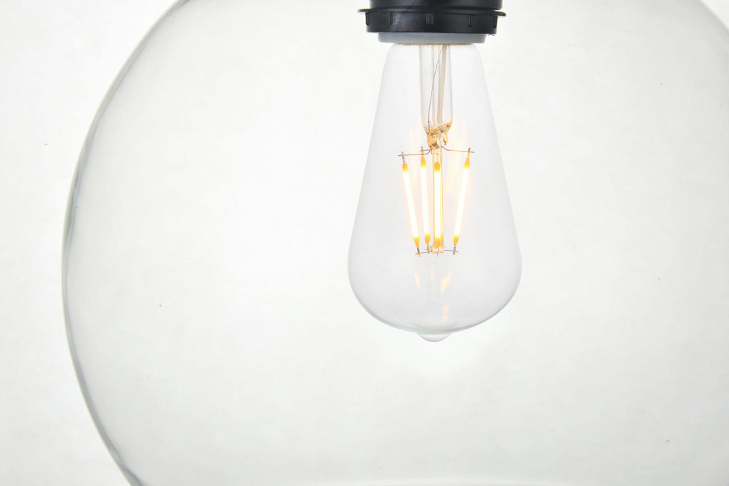 Dimensions Chain/Rod Length: 60" Length: 9.8" Width: 9.8" Height: 9.9" Maximum Height: 70" Wire Length: 60" Specifications Product Type: Pendants Hanging Device: Cord Voltage: 110V - 125V Dimmable: Yes Socket Type: E26 Number of Lights: 1 Wattage/Bulb: 40 Max/Nominal Watt: 40 Wire Included: Yes ETL: Yes Harware Material: Iron Fixture Material: Iron and Glass Product Shape: Pendants Assembly Required: No Hardware Finish: Black Dry/Wet/Damp: Dry Rated Weight: 2.6 Product Warranty: 1 year limited Shipment type: Small Parcel