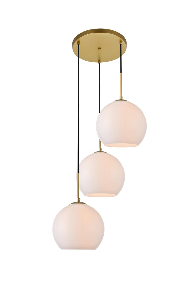 Dimensions Chain/Rod Length: 79" Length: 20.1" Width: 20.1" Height: 9.9" Maximum Height: 89" Wire Length: 79" Specifications Product Type: Pendants Hanging Device: Cord Voltage: 110V - 125V Dimmable: Yes Socket Type: E26 Number of Lights: 3 Wattage/Bulb: 40 Max/Nominal Watt: 120 Wire Included: Yes ETL: Yes Harware Material: Iron Fixture Material: Iron and Glass Product Shape: Pendants Assembly Required: No Hardware Finish: Brass Dry/Wet/Damp: Dry Rated Weight: 8.9 Product Warranty: 1 year limited Shipment type: Small Parcel
