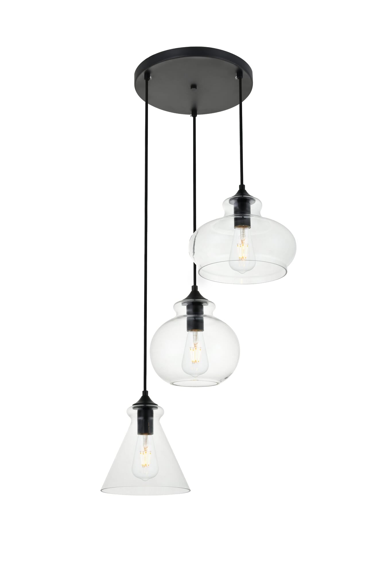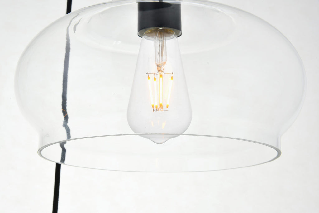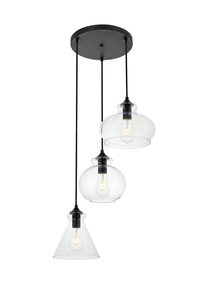Dimensions Chain/Rod Length: 79" Length: 18.5" Width: 18.5" Height: 9.4" Maximum Height: 88" Wire Length: 79" Specifications Product Type: Pendants Hanging Device: Cord Voltage: 110V - 125V Dimmable: Yes Socket Type: E26 Number of Lights: 3 Wattage/Bulb: 40 Max/Nominal Watt: 120 Wire Included: Yes ETL: Yes Harware Material: Iron Fixture Material: Iron and Glass Product Shape: Pendants Assembly Required: No Hardware Finish: Black Weight: 5.9 Product Warranty: 1 year limited Shipment type: Small Parcel