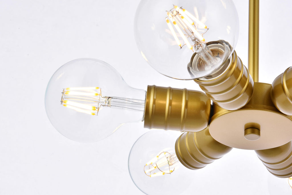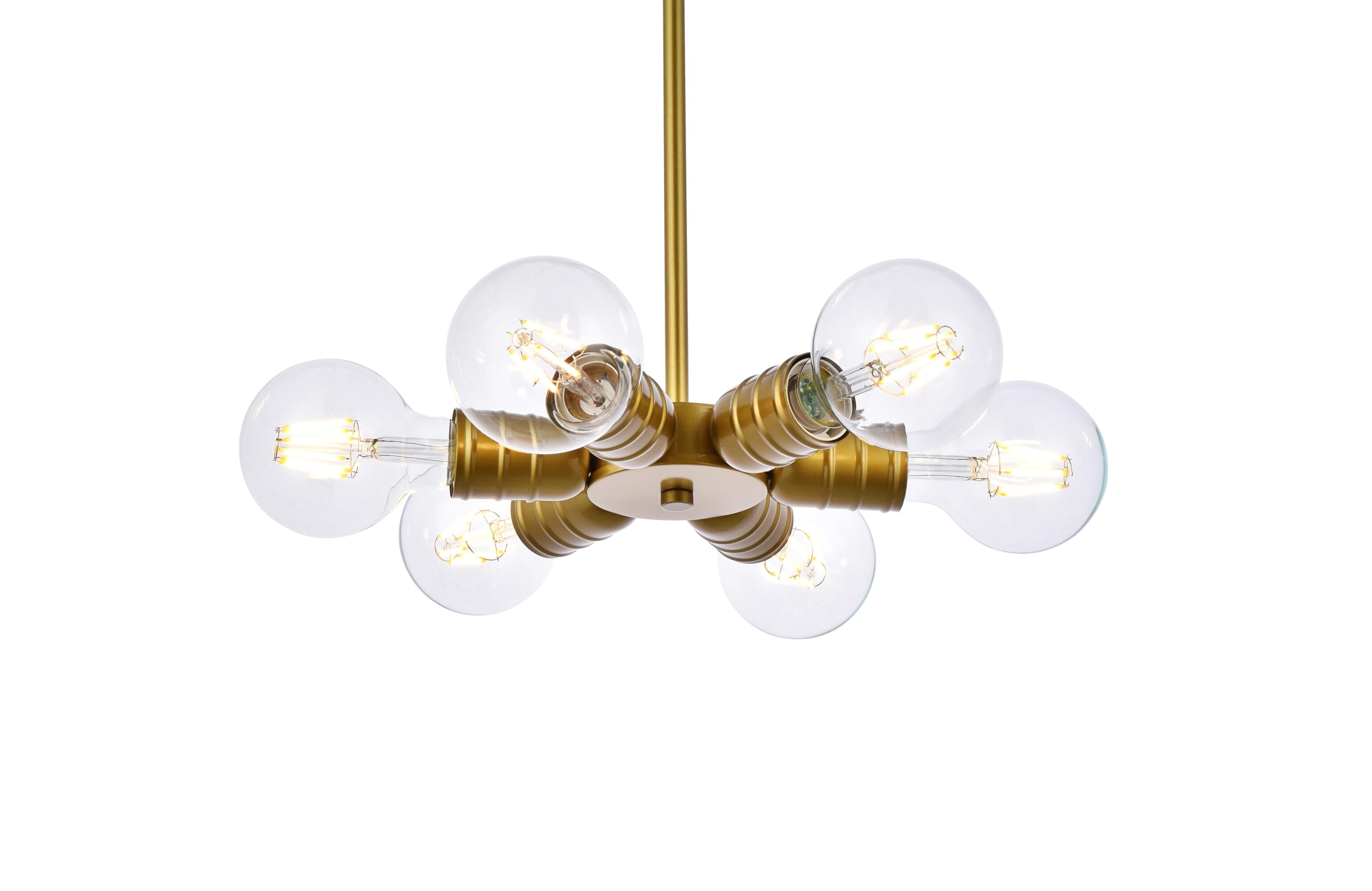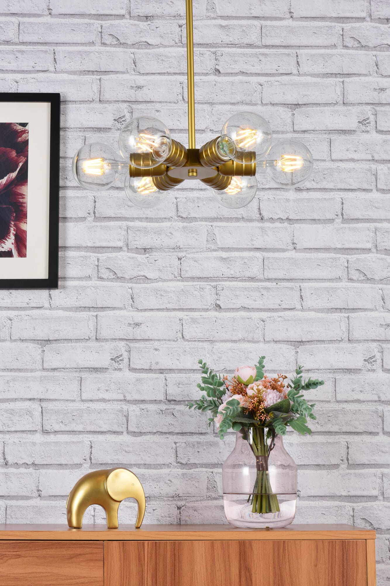 Dimensions Chain/Rod Length: 46" Length: 8.3" Width: 8.3" Height: 1.7" Maximum Height: 48.7" Wire Length: 59" Specifications Product Type: Pendants Hanging Device: Rod Voltage: 110V - 125V Dimmable: Yes Socket Type: E26 Number of Lights: 6 Wattage/Bulb: 40W Max/Nominal Watt: 240W Wire Included: Yes ETL: YES Harware Material: Iron Fixture Material: Iron Product Shape: Geometric Assembly Required: No Distressed Finish: NO Hardware Finish: brass Bulb Included: Not Included Dry/Wet/Damp: Damp Weight: 2.2 Product Warranty: 1 year limited Shipment type: Small parcel