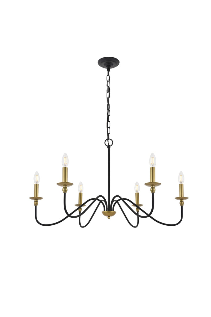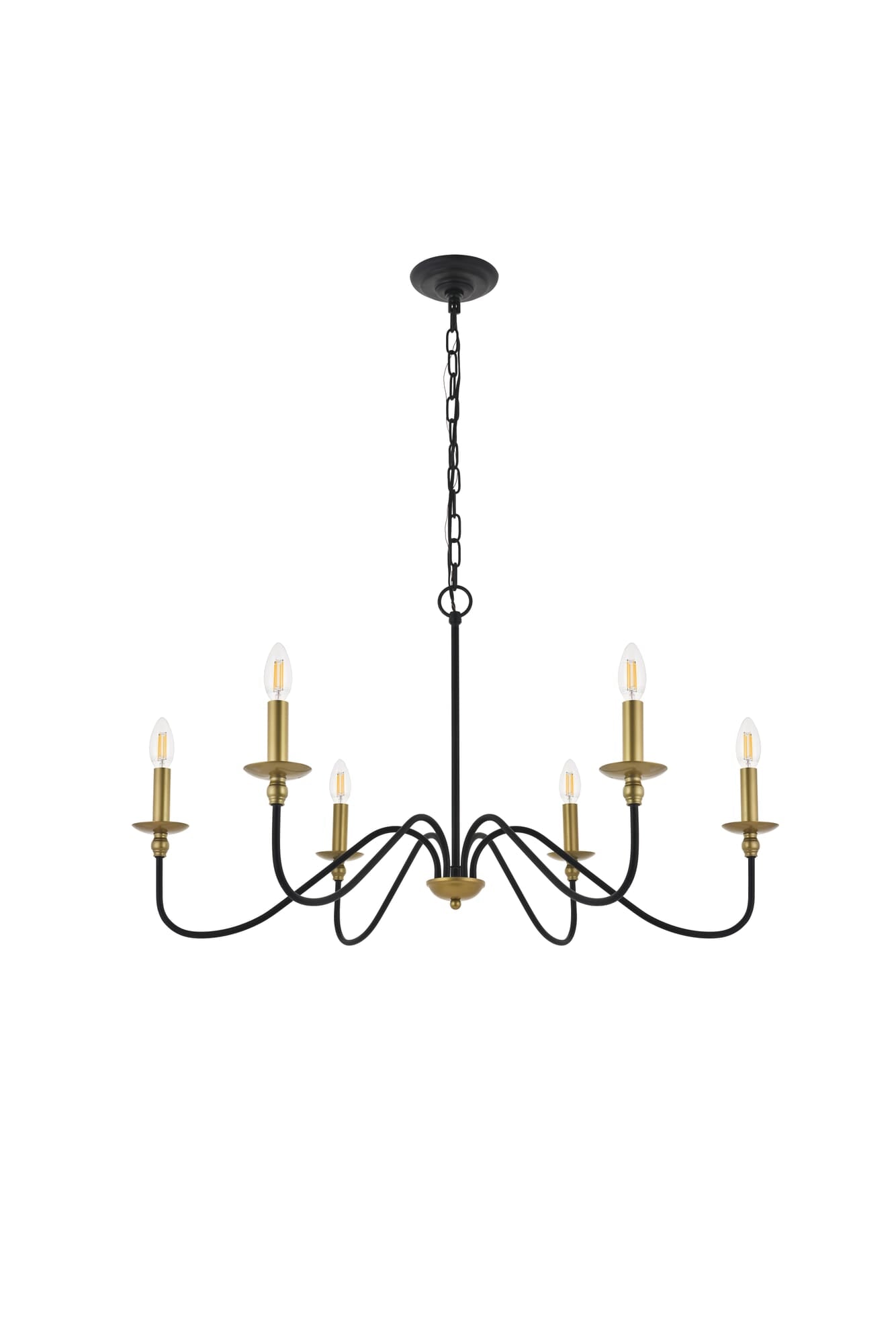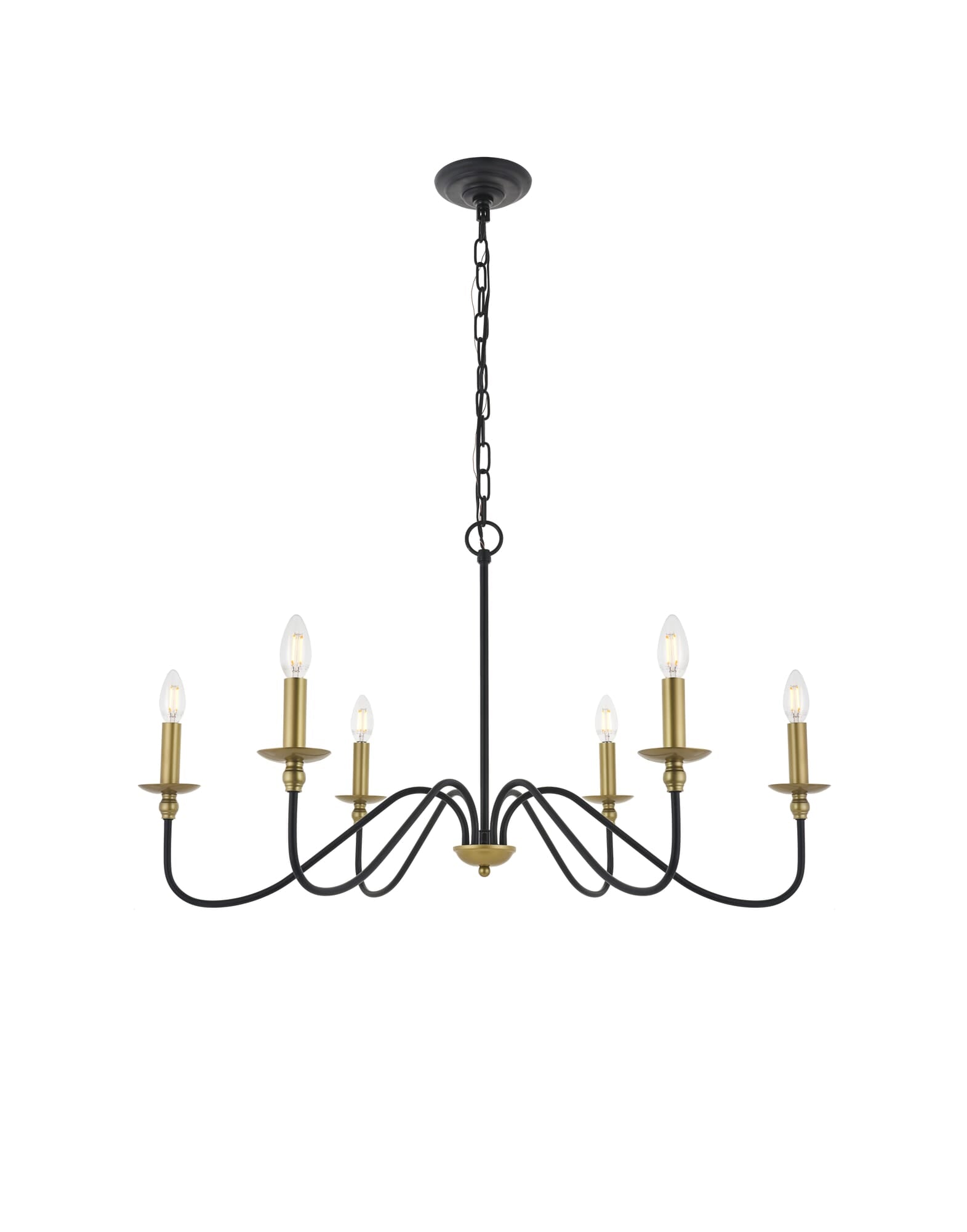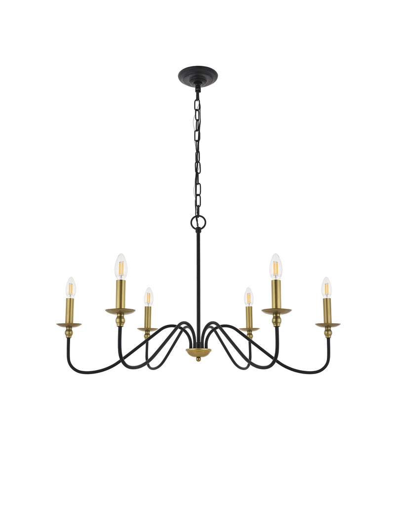 Dimensions Chain/Rod Length: 59" Length: 36" Width: 36" Height: 19" Maximum Height: 80" Wire Length: 79" Specifications Product Type: Pendants Hanging Device: Chain Voltage: 120V Dimmable: Yes Socket Type: E26 Number of Lights: 6 Wattage/Bulb: 40W Max/Nominal Watt: 240W Wire Included: Yes ETL: no Harware Material: Iron Fixture Material: Iron Product Shape: Pendants Assembly Required: NO Hardware Finish: Matte Black and Brass UL & ULC Standard: UL Dry/Wet/Damp: Dry Weight: 5.9 Product Warranty: 1 year limited Shipment type: Small Parcel