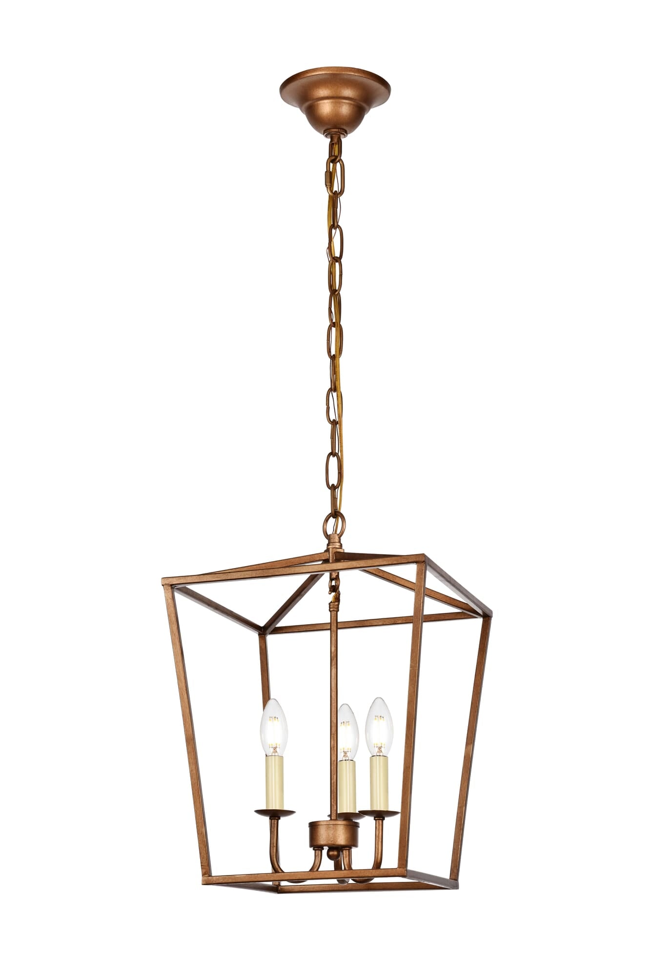 Dimensions Chain/Rod Length: 60" Length: 12.5" Width: 12.5" Height: 18.25" Maximum Height: 80.7" Wire Length: 78.7" Specifications Product Type: Pendants Hanging Device: Chain Voltage: 110V - 125V Dimmable: Yes Socket Type: E12 Number of Lights: 3 Wattage/Bulb: 40 Max/Nominal Watt: 120 Wire Included: Yes Bulb Shape: B10 Harware Material: Metal Fixture Material: Metal Product Shape: Pendants Assembly Required: No Hardware Finish: Vintage Gold Bulb Included: No UL & ULC Standard: UL,ULC Dry/Wet/Damp: Dry Rated Weight: 5 Product Warranty: 1 year limited Shipment type: Small Parcel