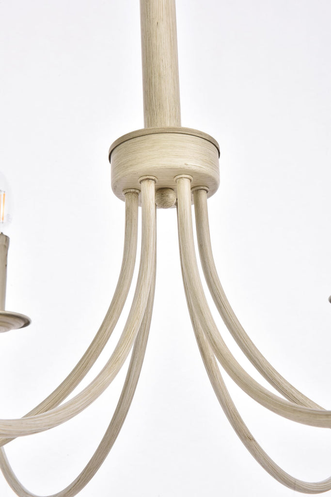 Dimensions Chain/Rod Length: 59" Length: 32" Width: 32" Height: 25.8" Maximum Height: 90" Wire Length: 78.7" Specifications Product Type: Pendants Hanging Device: Chain Voltage: 110V Dimmable: Yes Socket Type: E12 Number of Lights: 6 Wattage/Bulb: 40W Max/Nominal Watt: 240W Wire Included: Yes ETL: yes Harware Material: Iron Fixture Material: Metal Product Shape: Pendants Assembly Required: NO Distressed Finish: No Hardware Finish: Weathered Dove Bulb Included: No UL & ULC Standard: No Dry/Wet/Damp: Dry Weight: 5.7 Product Warranty: 1 year limited Shipment type: Small Parcel