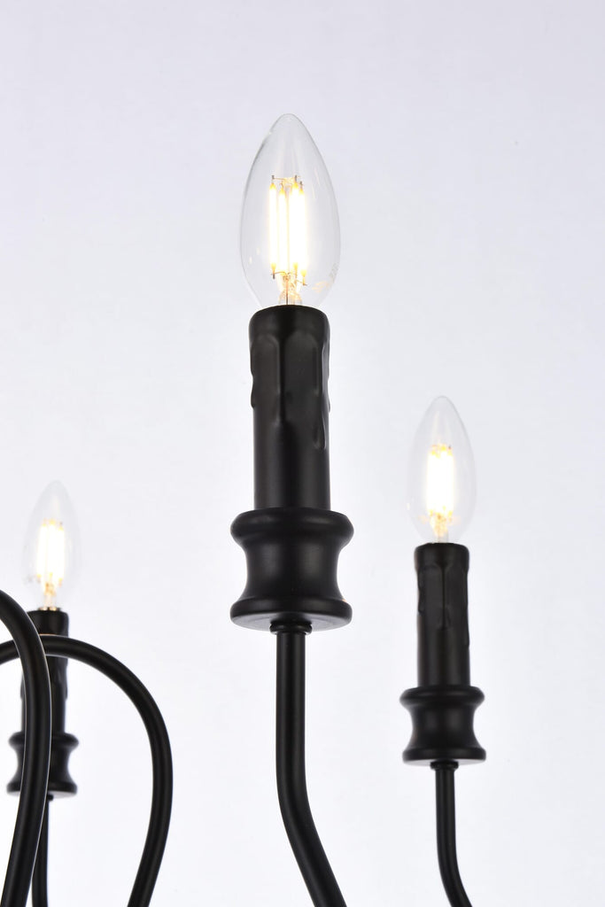 Dimensions Chain/Rod Length: 59" Length: 26" Width: 26" Height: 24.4" Maximum Height: 87.1" Wire Length: 78.7" Specifications Product Type: Pendants Hanging Device: Chain Voltage: 110V Dimmable: Yes Socket Type: E12 Number of Lights: 6 Wattage/Bulb: 40W Max/Nominal Watt: 240W Wire Included: Yes ETL: yes Harware Material: Iron Fixture Material: Metal Product Shape: Pendants Assembly Required: NO Distressed Finish: No Hardware Finish: Black Bulb Included: No Dry/Wet/Damp: Damp Weight: 7.9 Product Warranty: 1 year limited Shipment type: Small Parcel