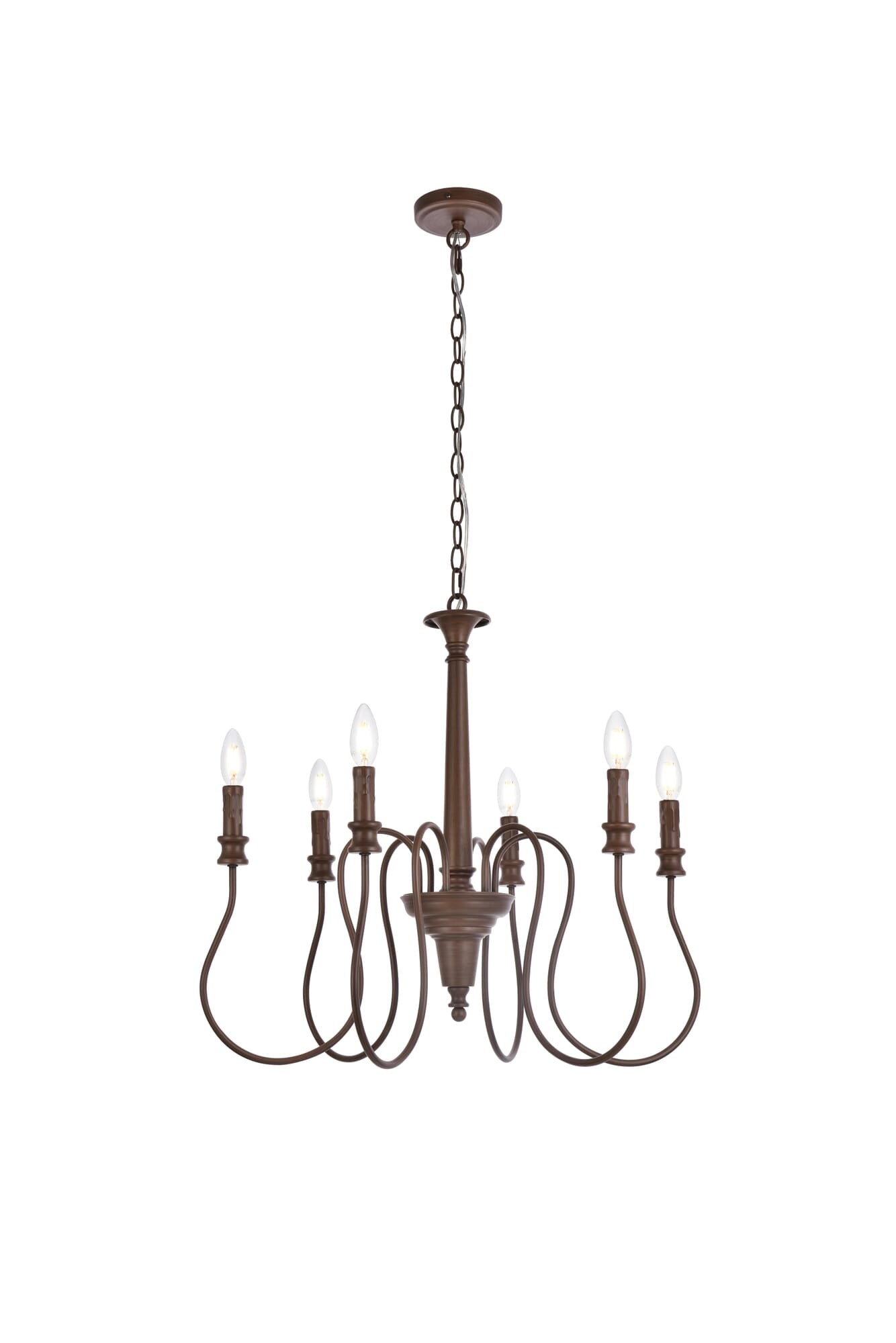 Dimensions Chain/Rod Length: 59" Length: 26" Width: 26" Height: 24.4" Maximum Height: 87" Wire Length: 78.7" Specifications Product Type: Pendants Hanging Device: Chain Voltage: 110V Dimmable: Yes Socket Type: E12 Number of Lights: 6 Wattage/Bulb: 40W Max/Nominal Watt: 240W Wire Included: Yes ETL: yes Harware Material: Iron Fixture Material: Metal Product Shape: Pendants Assembly Required: NO Distressed Finish: No Hardware Finish: Weathered Oak Bulb Included: No UL & ULC Standard: No Dry/Wet/Damp: Dry Weight: 7.9 Product Warranty: 1 year limited Shipment type: Small Parcel