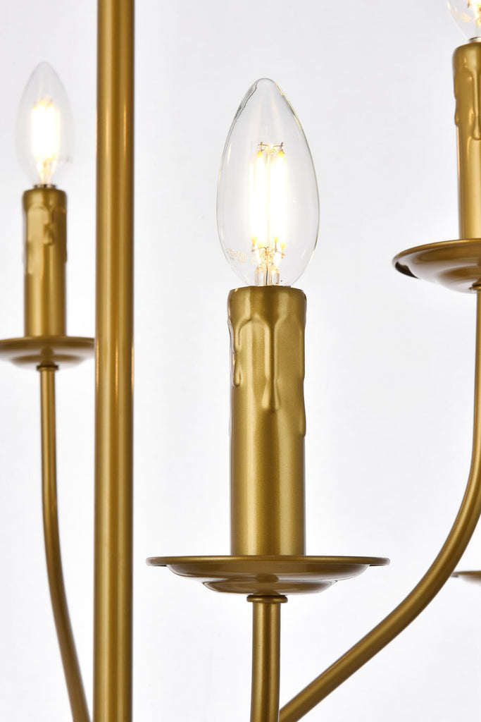 Dimensions Chain/Rod Length: 59" Length: 24" Width: 24" Height: 24.8" Maximum Height: 86.5" Wire Length: 78.7" Specifications Product Type: Pendants Hanging Device: Chain Voltage: 110V Dimmable: Yes Socket Type: E12 Number of Lights: 6 Wattage/Bulb: 40W Max/Nominal Watt: 240W Wire Included: Yes ETL: yes Harware Material: Iron Fixture Material: Metal Product Shape: Pendants Assembly Required: NO Distressed Finish: No Hardware Finish: Brass Bulb Included: No Dry/Wet/Damp: Damp Weight: 5.5 Product Warranty: 1 year limited Shipment type: Small Parcel