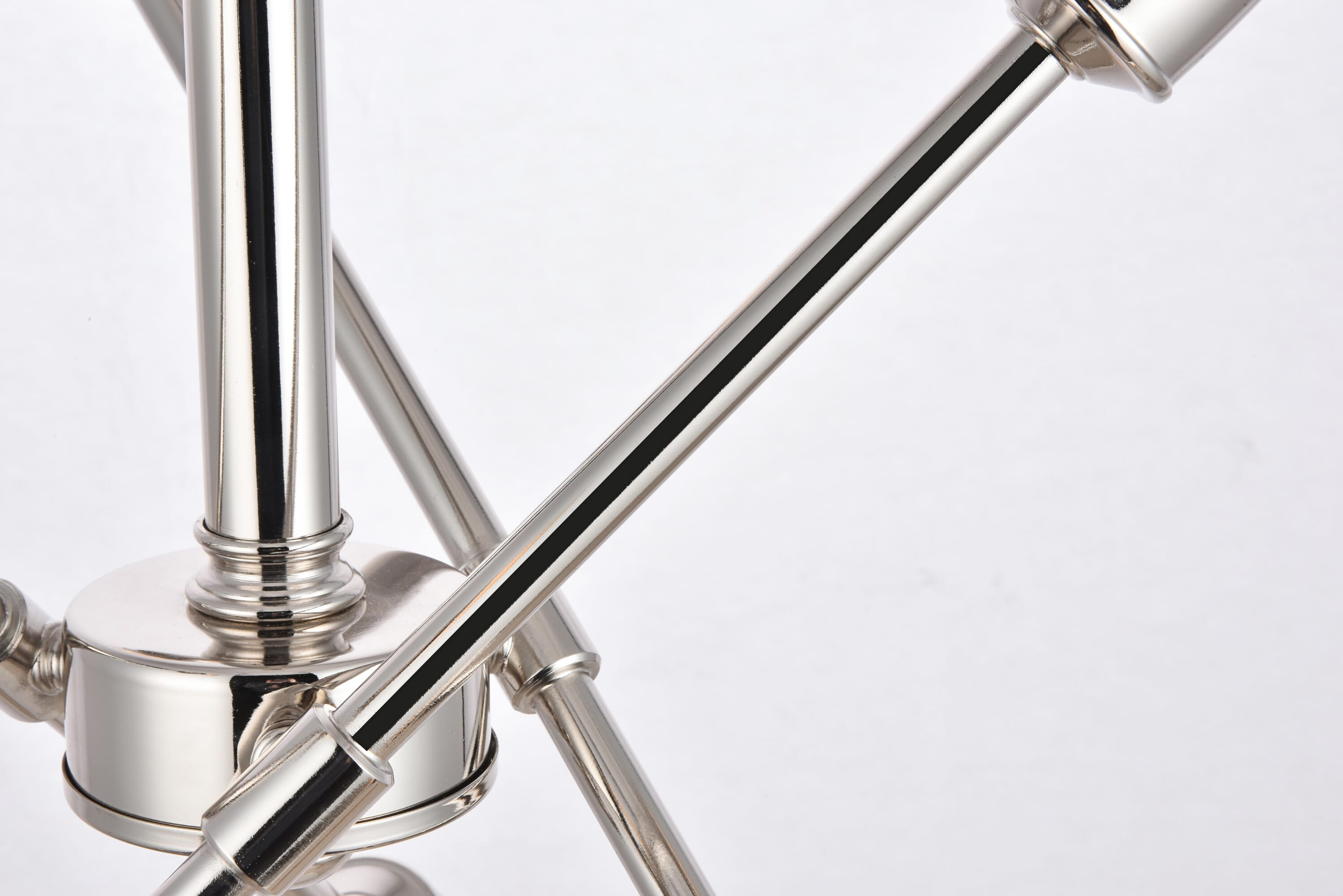 Dimensions Chain/Rod Length: 49" Length: 17.1" Width: 17.1" Height: 19.6" Maximum Height: 67" Wire Length: 56" Specifications Product Type: Pendants Hanging Device: Rod Voltage: 110V - 125V Dimmable: Yes Socket Type: E26 Number of Lights: 6 Wattage/Bulb: 60W Max/Nominal Watt: 360W Wire Included: Yes ETL: Yes Harware Material: steel Fixture Material: Metal Product Shape: Pendants Assembly Required: No Hardware Finish: Polished nickel Weight: 5.53 Product Warranty: 1 year limited Shipment type: Small Parcel