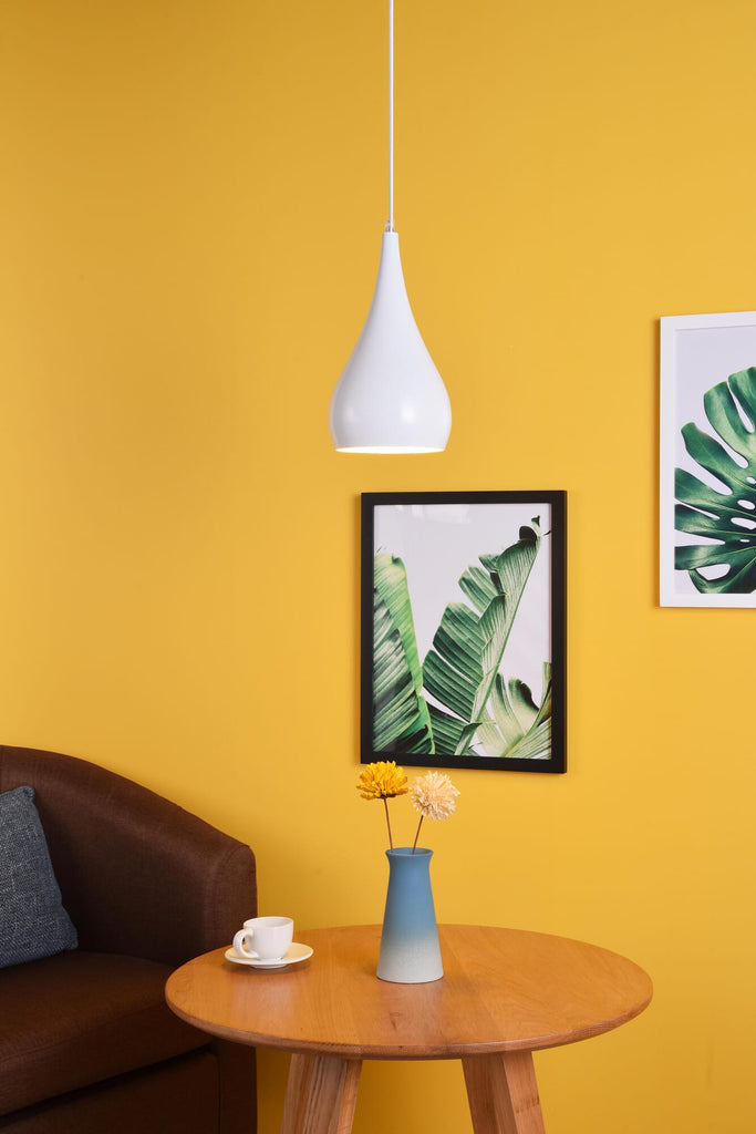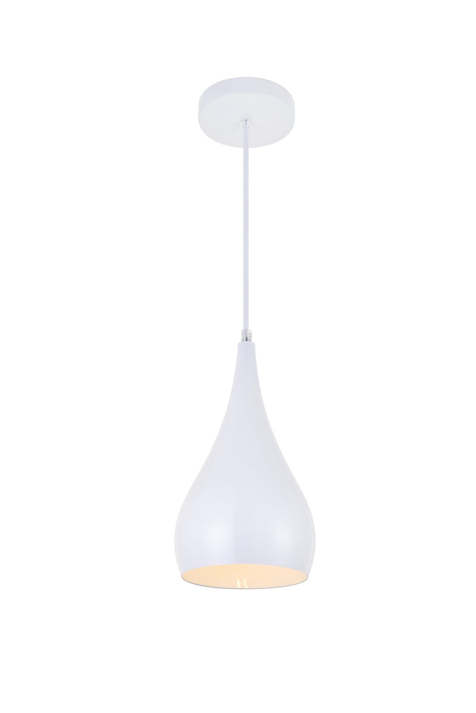 Dimensions Chain/Rod Length: 60" Length: 6" Width: 6" Height: 11.5" Maximum Height: 71.5" Wire Length: 60" Specifications Product Type: Pendants Hanging Device: Cord Voltage: 110V - 125V Dimmable: Yes Socket Type: E26 Number of Lights: 1 Wattage/Bulb: 40W Max/Nominal Watt: 40W Wire Included: Yes ETL: ETL Harware Material: Aluminum Fixture Material: Aluminum Product Shape: Tear Drop Assembly Required: No Distressed Finish: no Hardware Finish: White Bulb Included: No UL & ULC Standard: No Dry/Wet/Damp: Dry Weight: 1 Product Warranty: 1 year limited Shipment type: Small Parcel