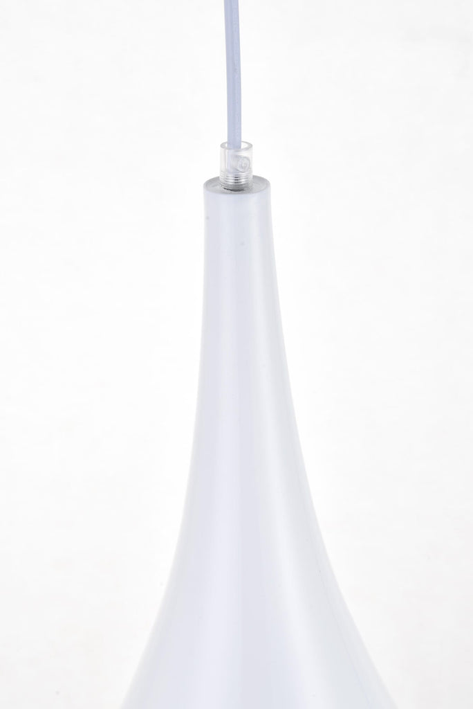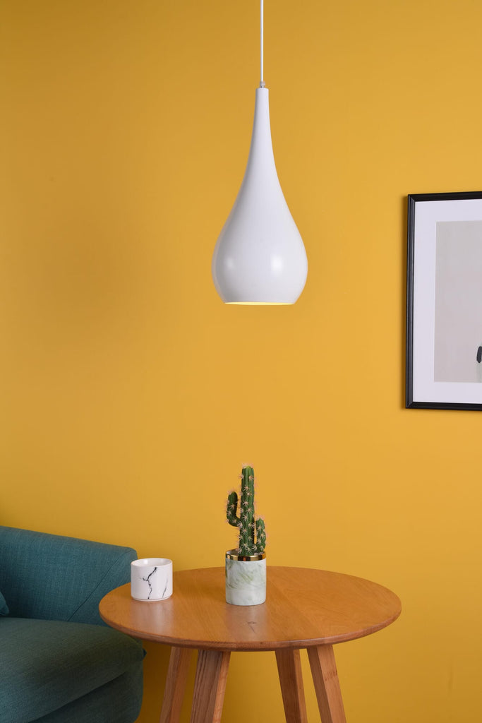 Dimensions Chain/Rod Length: 60" Length: 7.5" Width: 7.5" Height: 18" Maximum Height: 78" Wire Length: 60" Specifications Product Type: Pendants Hanging Device: Cord Voltage: 110V - 125V Dimmable: Yes Socket Type: E26 Number of Lights: 1 Wattage/Bulb: 40W Max/Nominal Watt: 40W Wire Included: Yes ETL: ETL Harware Material: Aluminum Fixture Material: Aluminum Product Shape: Tear Drop Assembly Required: No Distressed Finish: no Hardware Finish: White Bulb Included: No UL & ULC Standard: No Dry/Wet/Damp: Dry Weight: 1.3 Product Warranty: 1 year limited Shipment type: Small Parcel