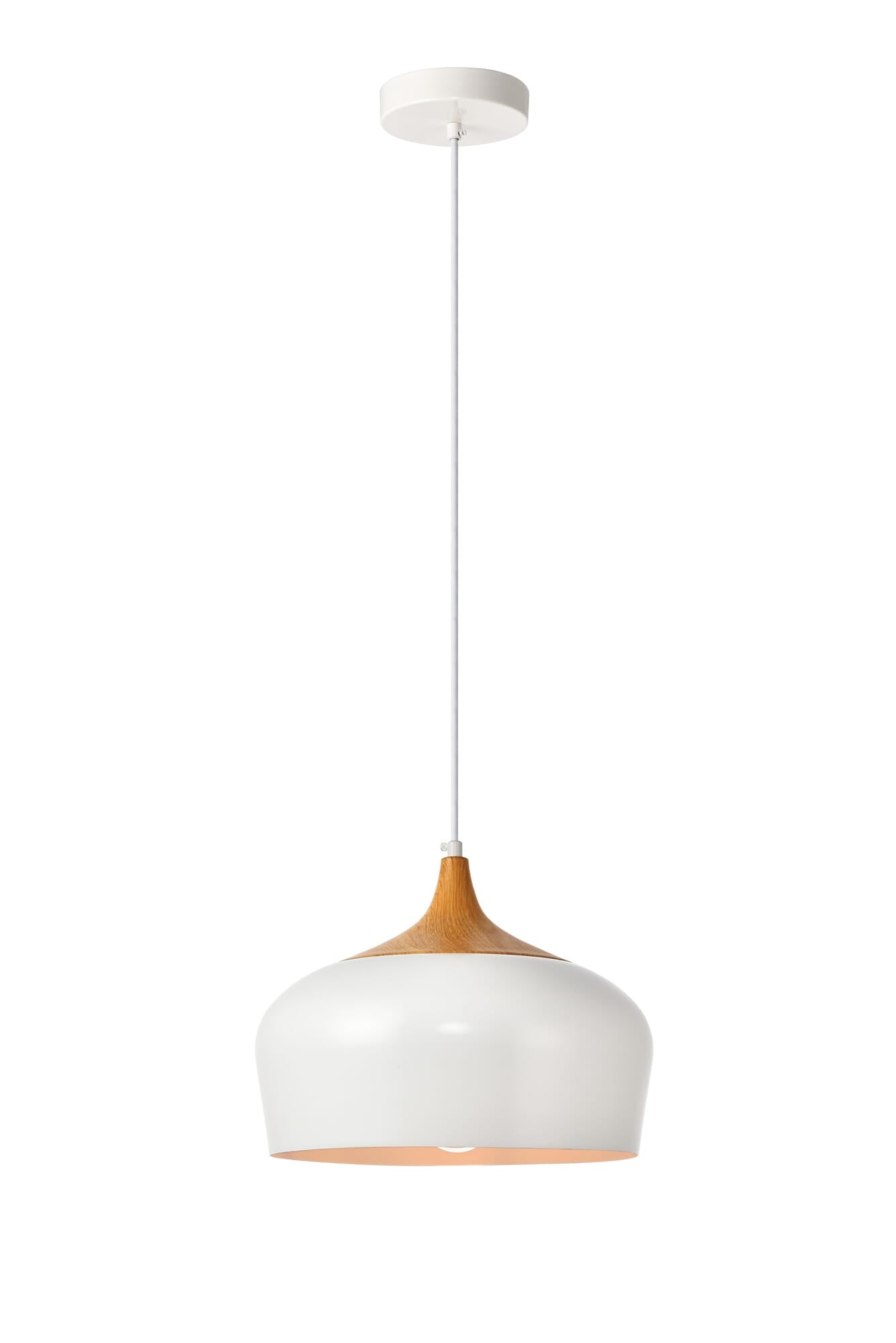 Dimensions Chain/Rod Length: 60" Length: 11.5" Width: 11.5" Height: 9" Maximum Height: 70" Wire Length: 59.1" Specifications Product Type: Pendants Hanging Device: Cord Voltage: 110V - 130 Dimmable: Yes Socket Type: E26 Number of Lights: 1 Wattage/Bulb: 40 Max/Nominal Watt: 40 Wire Included: Yes Bulb Shape: Medium; Bulb Not Provided Harware Material: Aluminum Fixture Material: Aluminum Product Shape: Pendants Assembly Required: No Hardware Finish: WH and Wood Bulb Included: No UL & ULC Standard: UL,ULC Dry/Wet/Damp: Dry Rated Weight: 1.9 Product Warranty: 1 year limited Shipment type: Small Parcel